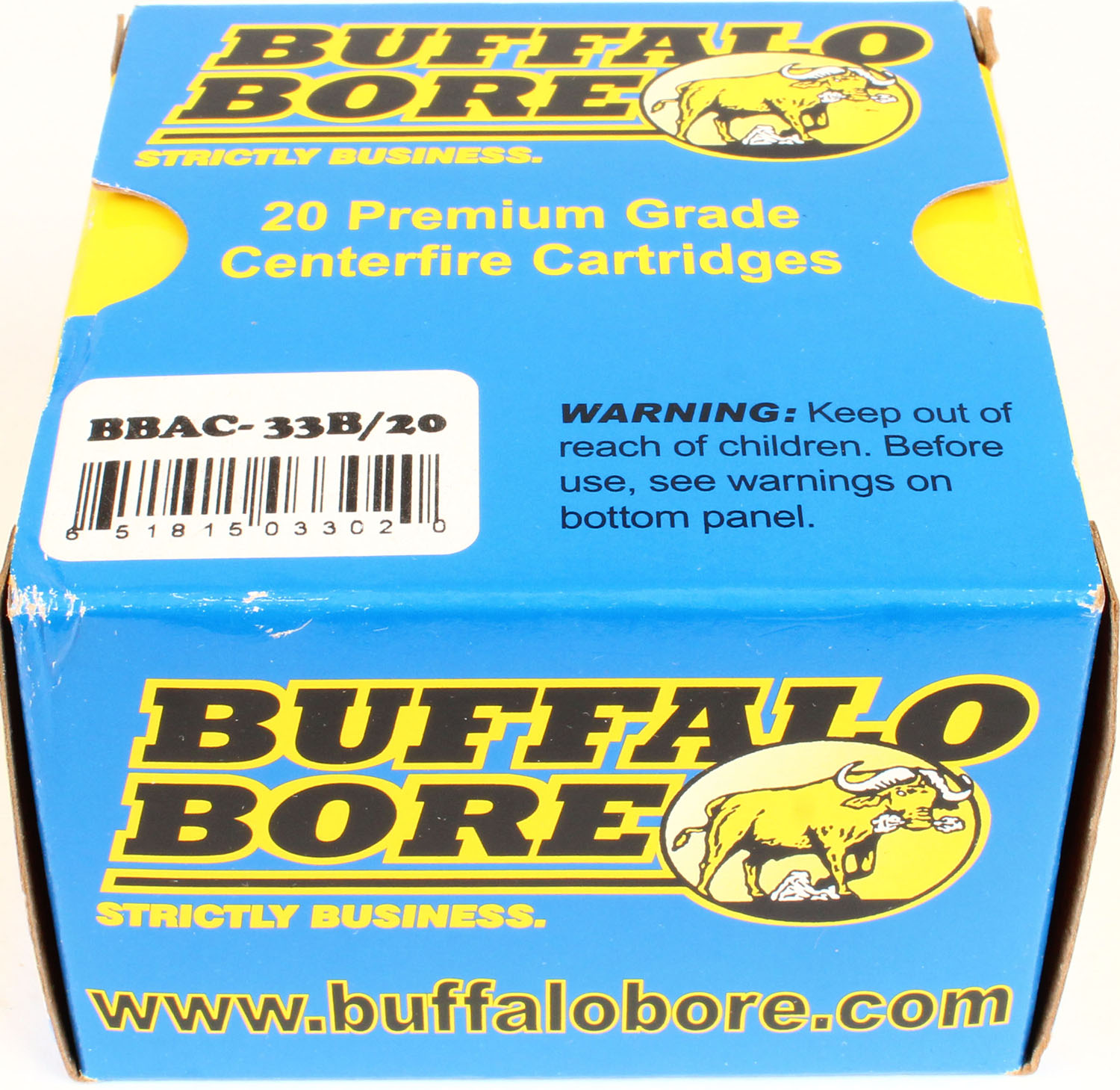 Buffalo Bore, 38 Super +P, 124 Grain JHP, Full, 1pc. multi-colored box, box is solid, with excellent color, Ammo is excellent. Grade: Excellent ++ - Value: 16 to 50