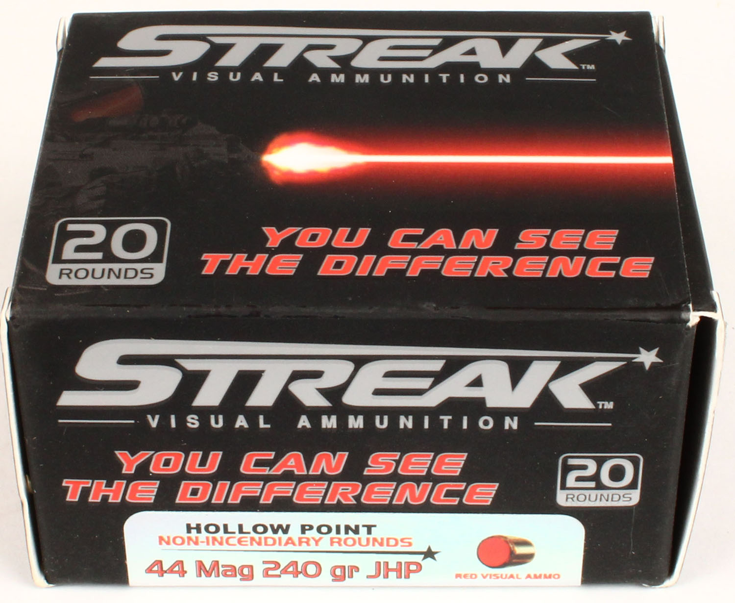 | Streak, 44 Mag, 240 Grain JHP, Non-Incendiary Rounds, Red Visual...