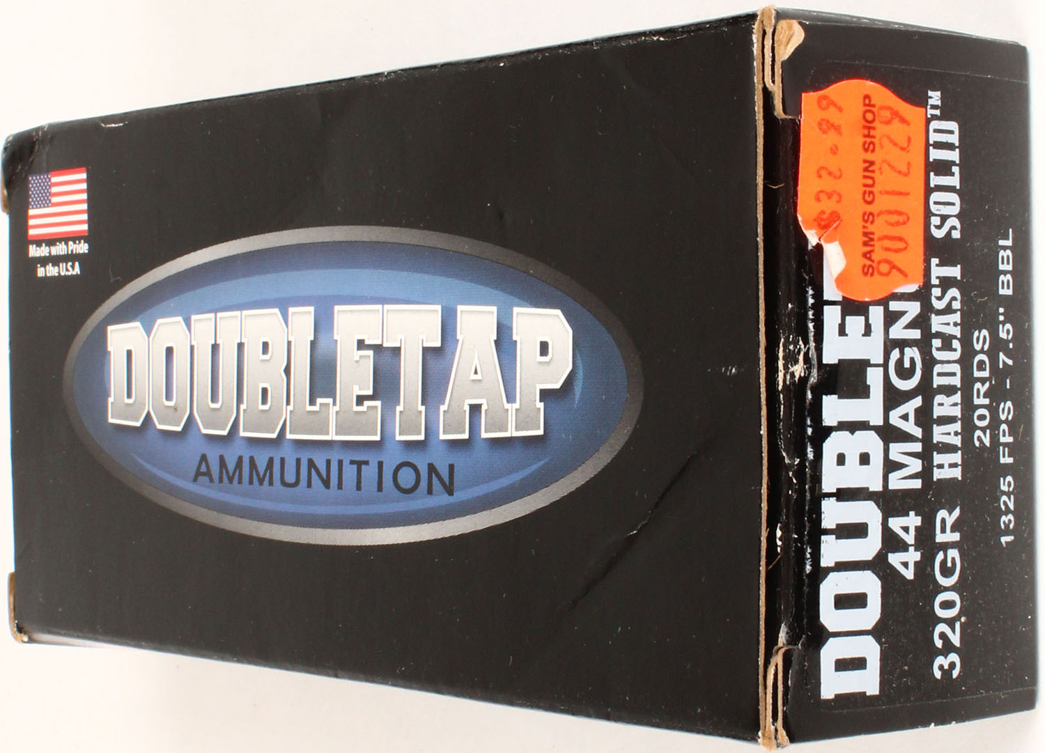 Doubletap, 44 mag., 320 Grain, Full, 1pc. Multi-colored box, box is solid, with excellent color, Ammo is excellent. Grade: Excellent ++ - Value: 16 to 50