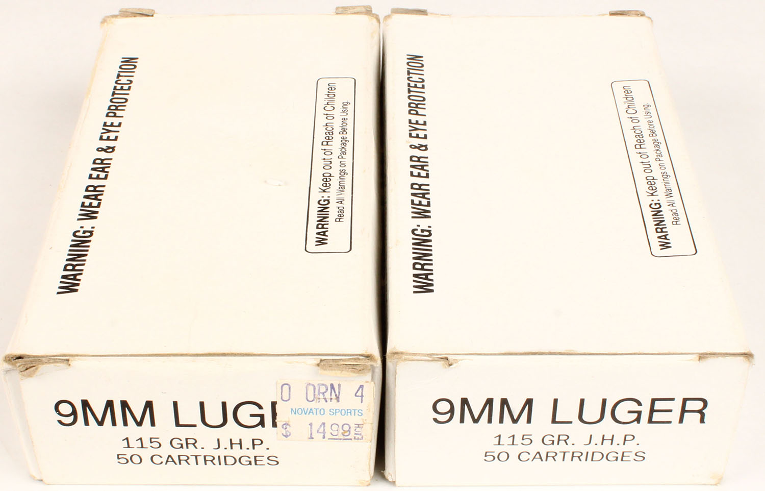 Lot of 2 9mm Luger, 155 gr. JHP, Full, 1pc. box is solid, Ammo is excellent. Grade: Excellent - Value: 20 to 80
