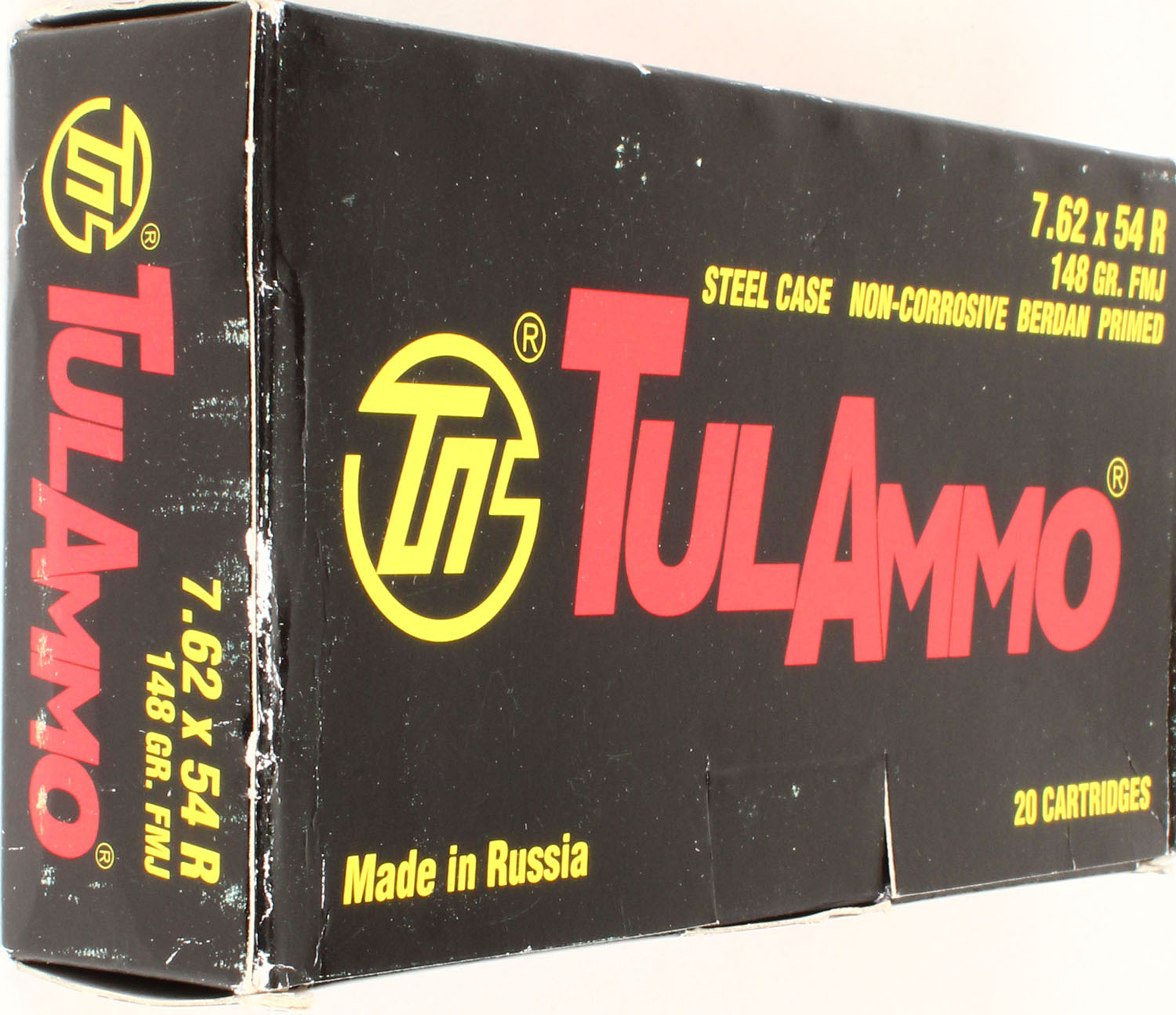 TulAmmo, 7.62x54R, 148 Grain FMJ, Full, 1pc. Multi-colored box, box is solid, with excellent color, Ammo is excellent. Grade: Excellent - Value: 20 to 60