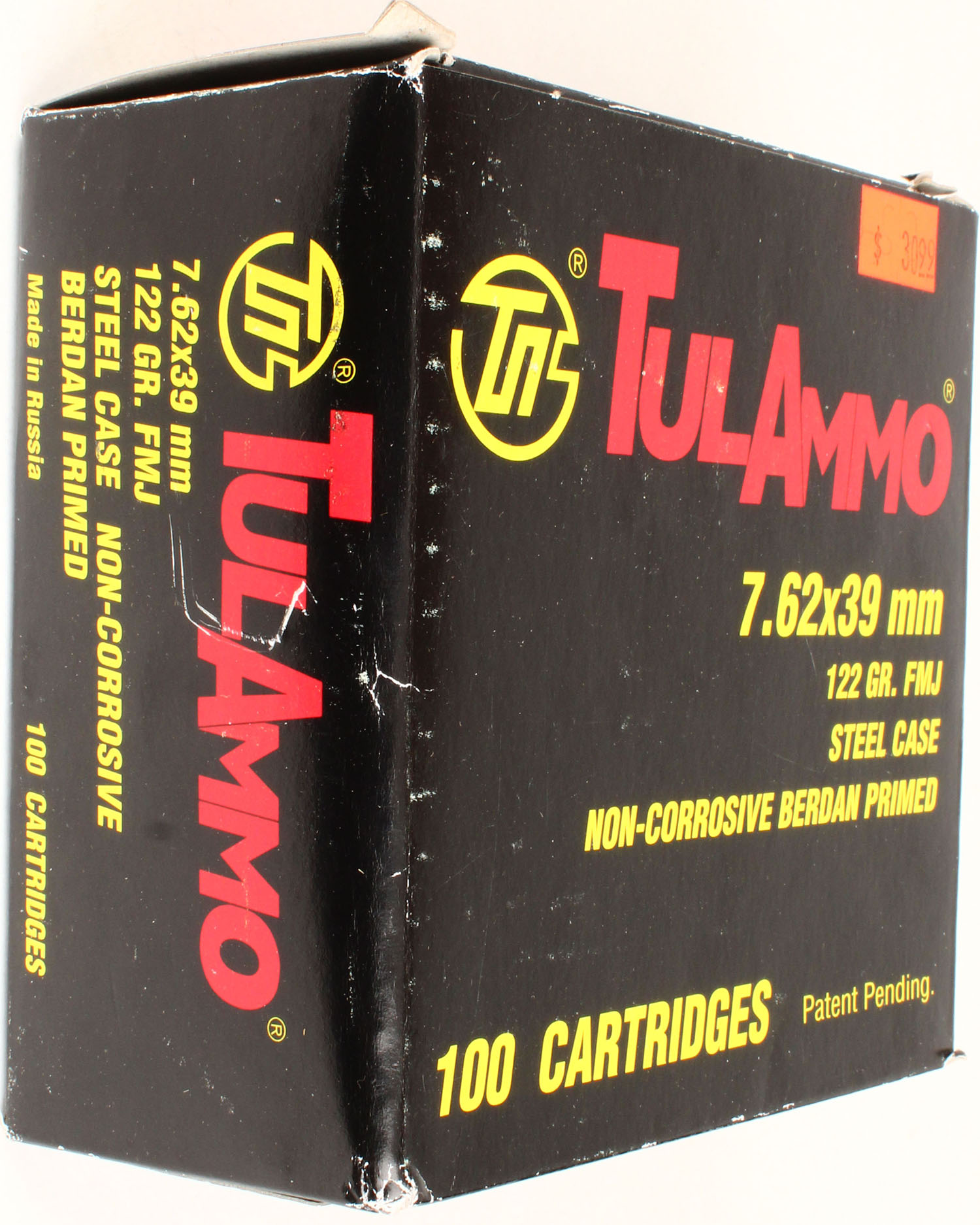 TulAmmo, 7.62x39mm, 122 Grain FMJ, Full, 1pc. Multi-colored box, box is solid, with excellent color, Ammo is excellent. Grade: Excellent - Value: 20 to 60