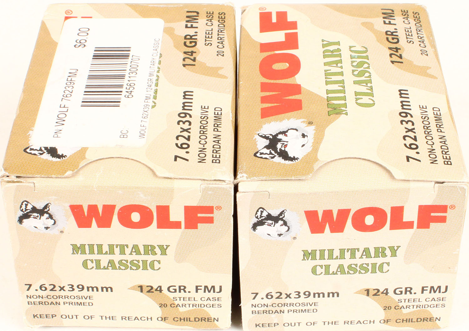 Lot of 2 Wolf, 7.62x39mm, 124 Grain FMJ, Full, 1pc. Multi-colored box, box is solid, with excellent color, Ammo is excellent. Grade: Excellent - Value: 20 to 60