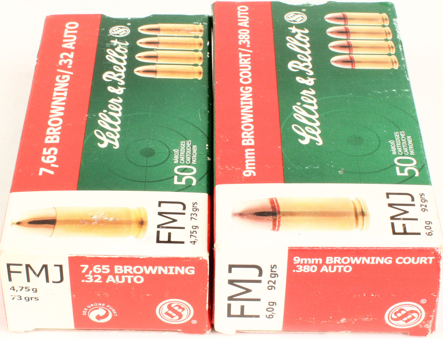 | Lot of 2 Sellier & Bellot, 9mm Browning Court/7.65 Browning, 92...