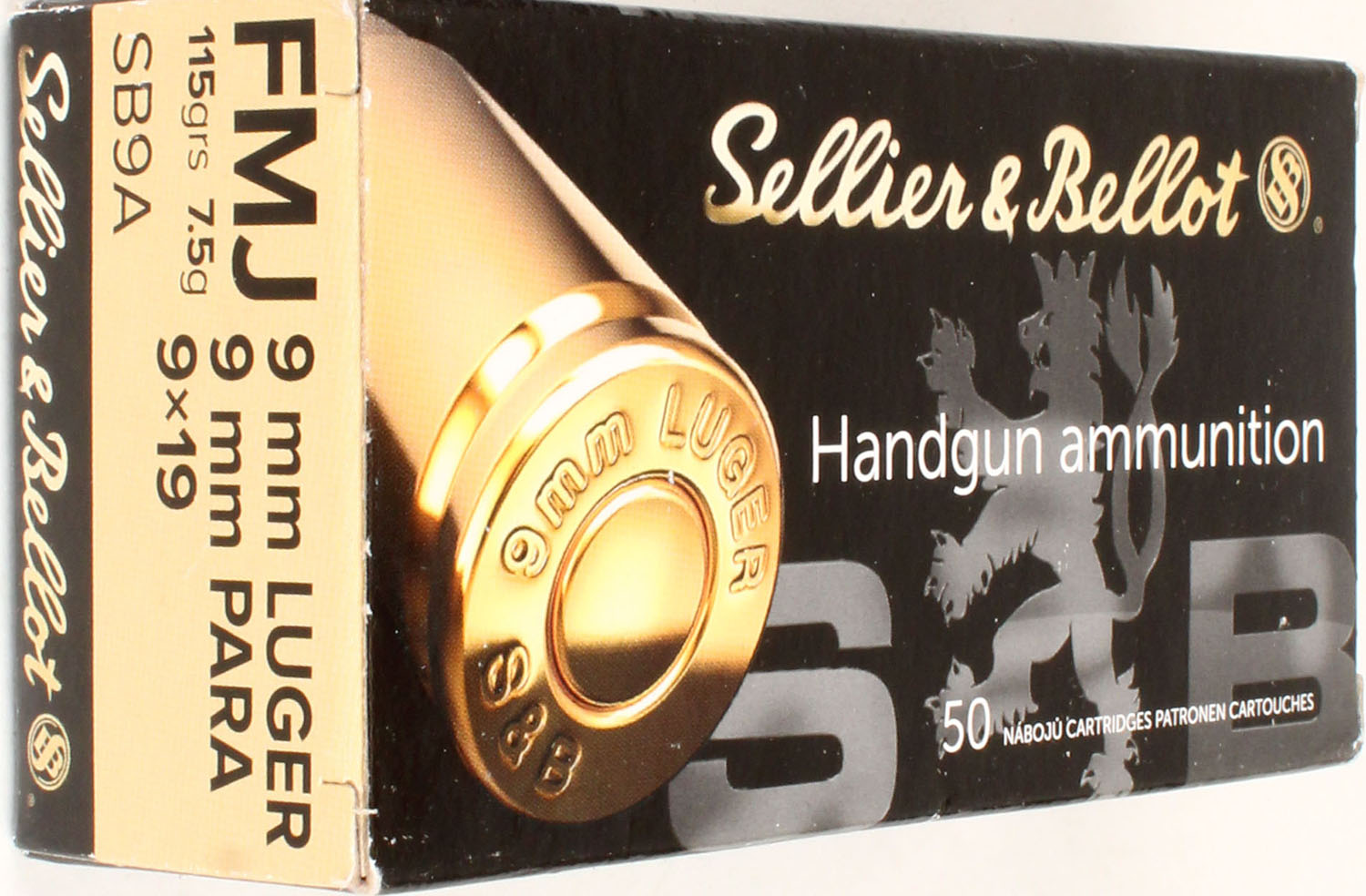 Sellier & Bellot, 9mm Luger, 115 Grs. FMJ, Full, 1pc. Multi-colored box, box is solid, with excellent color, Ammo is excellent. Grade: Excellent - Value: 20 to 60