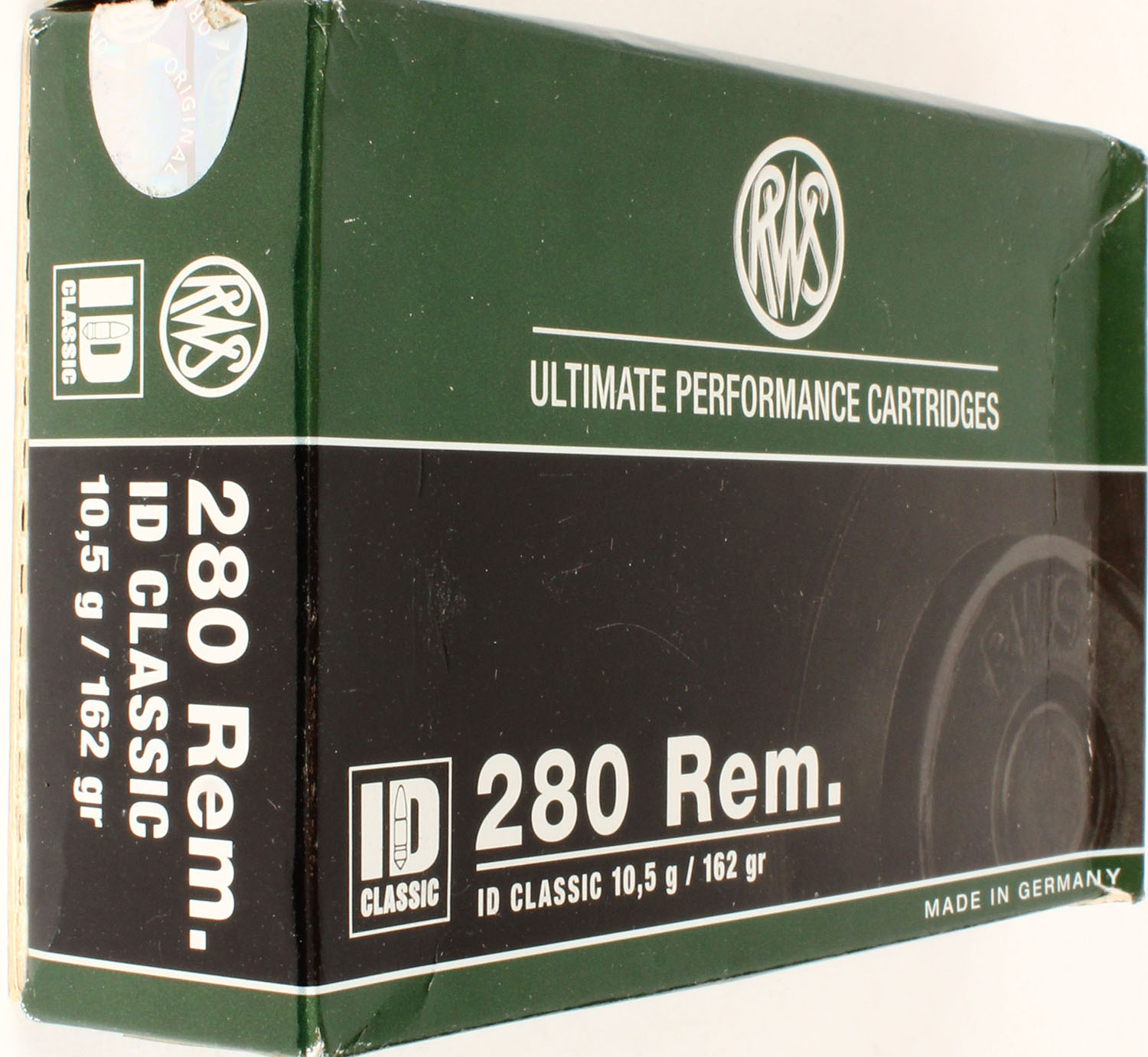 RWS, 280 Rem, 162 Grs., Full, 1pc. Multi-colored box, box is solid, with excellent color, Ammo is excellent. Grade: Excellent - Value: 20 to 60
