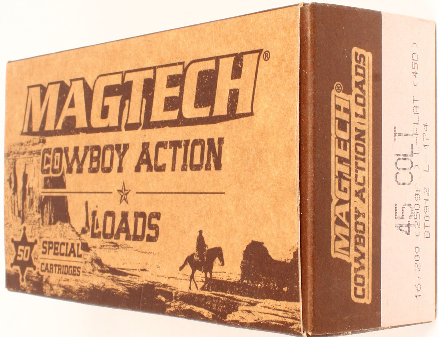 Magtech, Cowboy Action Loads, .45 L-Flat, 1pc., Full, 250gr, box & ammo are excellent. Grade: MINT - Value: 10 to 60