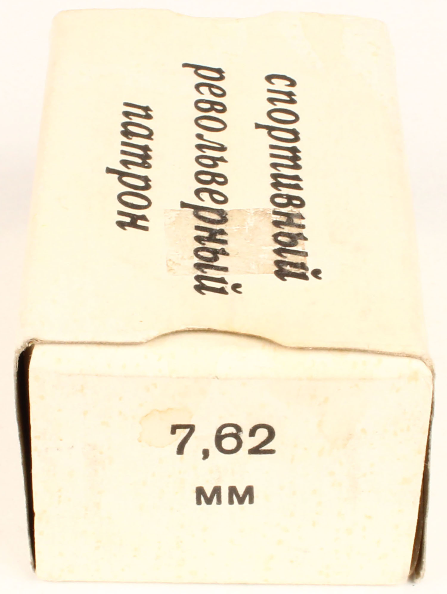Russian Ammo, 7.62 Nagant, Unknown Grain, Full, 1pc. Black & white box, box is solid, but has light soiling with very nice color, Ammo is excellent. Grade: Excellent - Value: 20 to 60