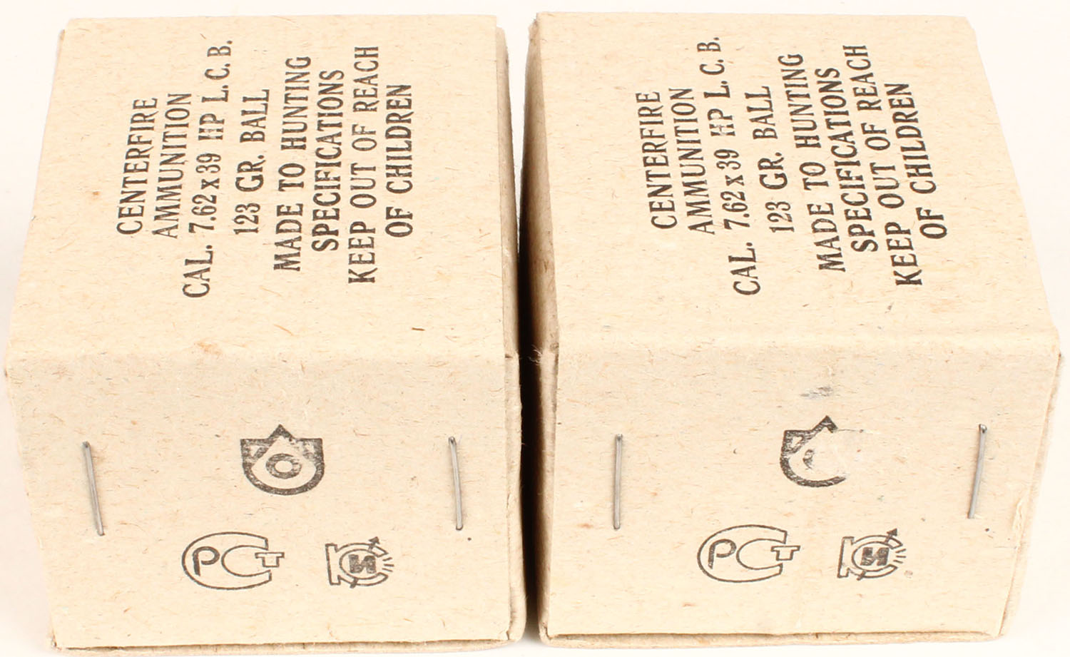Lot of 2 7.62x39 HP L.C.S., 123 Gr. Ball, 1pc, Full. Boxes and ammo are excellent. Grade: Excellent - Value: 16 to 50