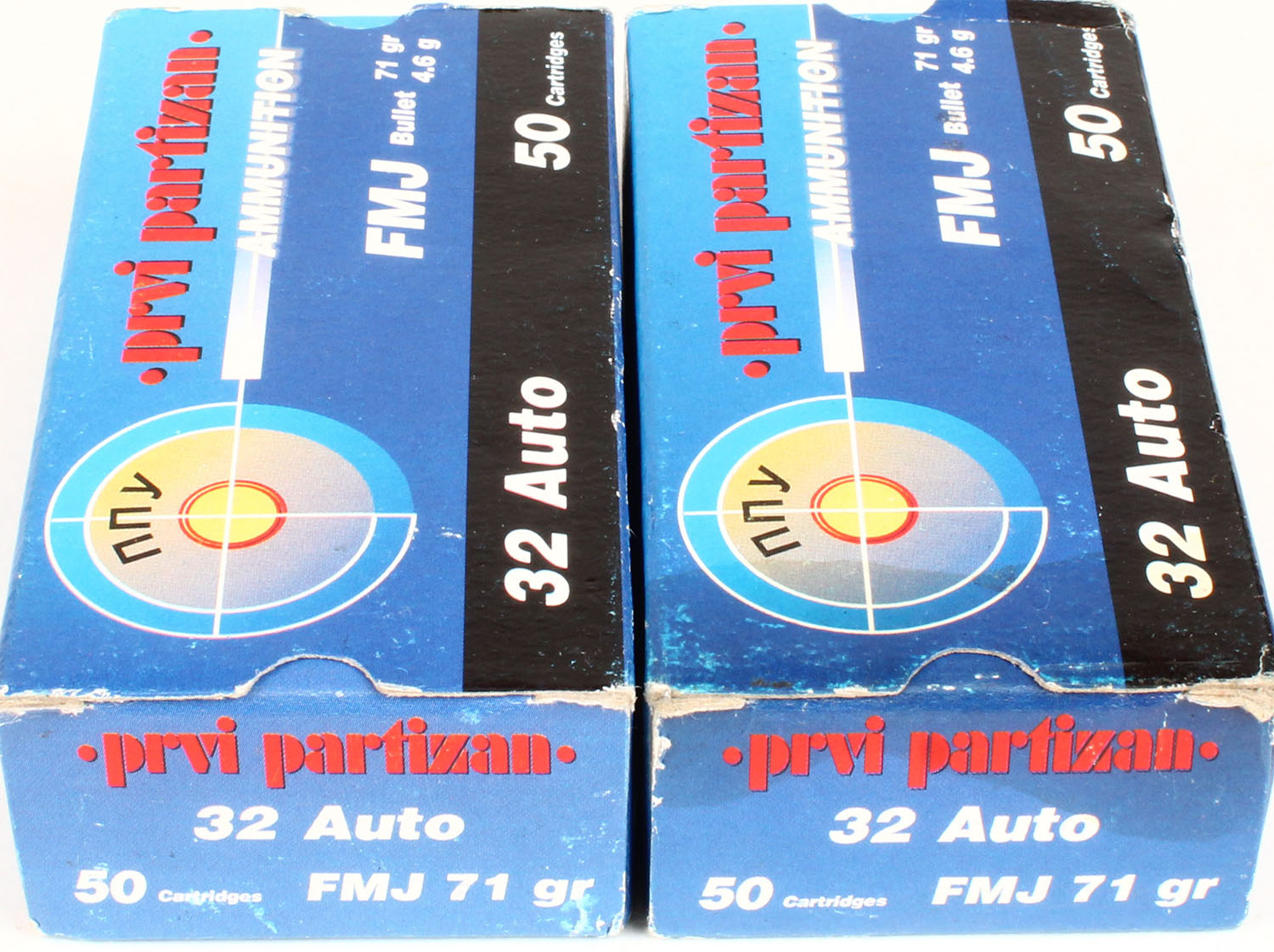 Lot of 2 NNY, 32 Auto, 1pc., Full, ammo is excellent. Grade: Excellent - Value: 16 to 50