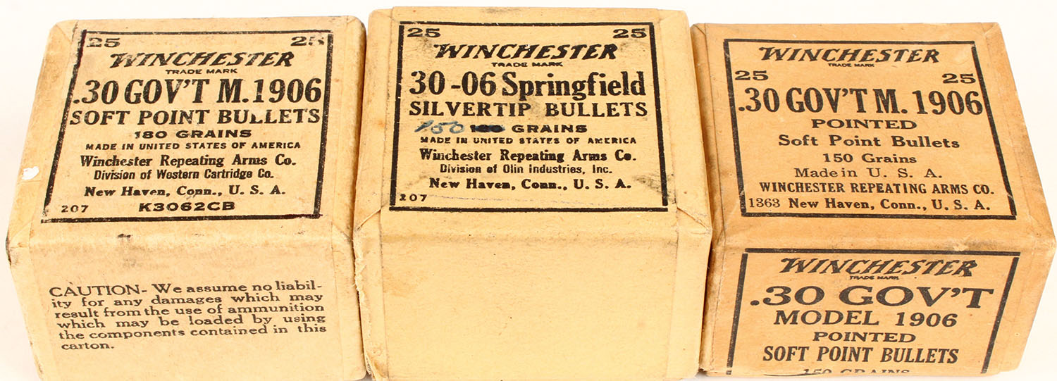 | Lot of 3 Winchester Bullet boxes, .30 Gov & 30-06, 2pc., Full. ...