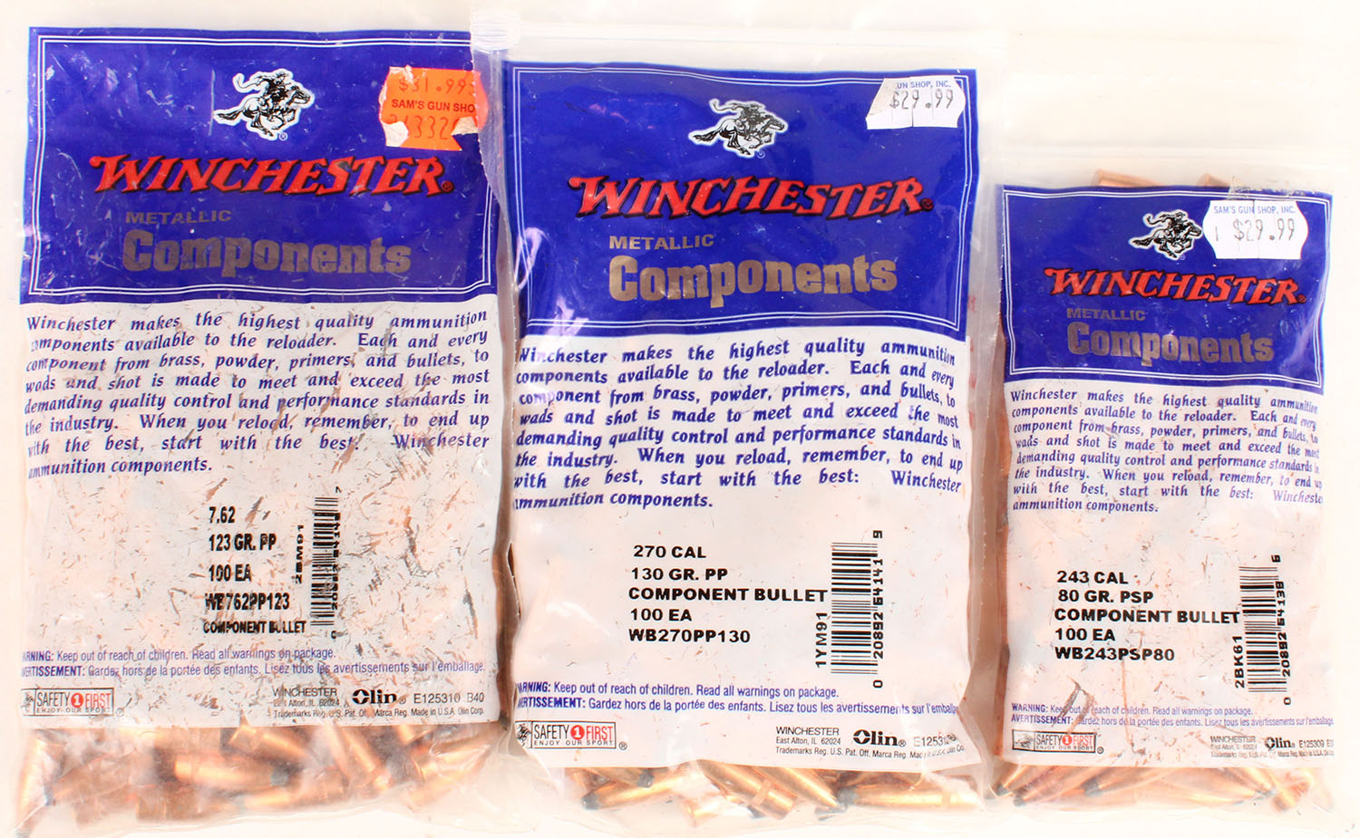 Large bag of bullets, 243 Cal. 80 Gr PP. Grade: Excellent ++ - Value: 20 to 60