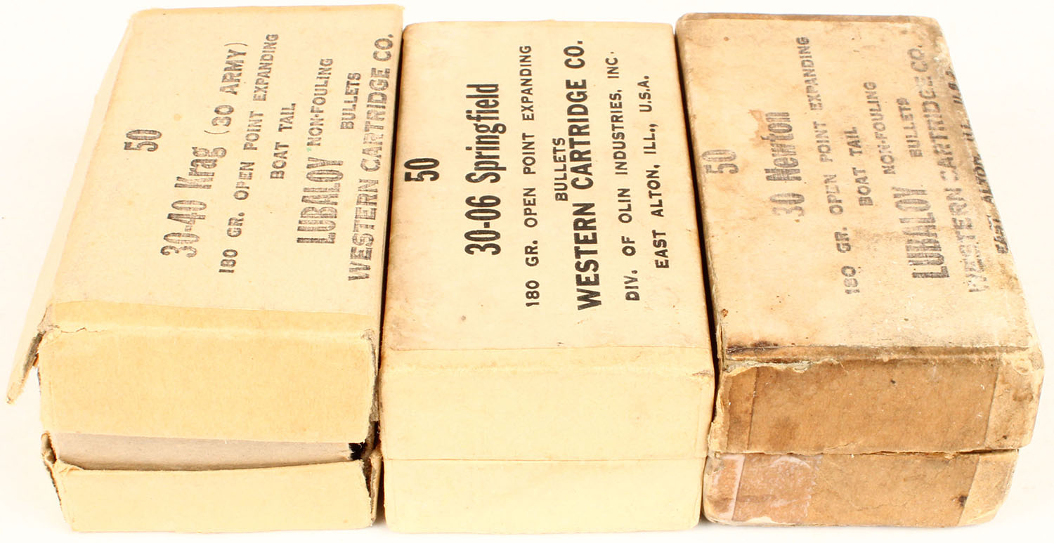 | Lot of 3 Western Bullet boxes, .30 Newton, 30-06 & 30-40 Krag, ...