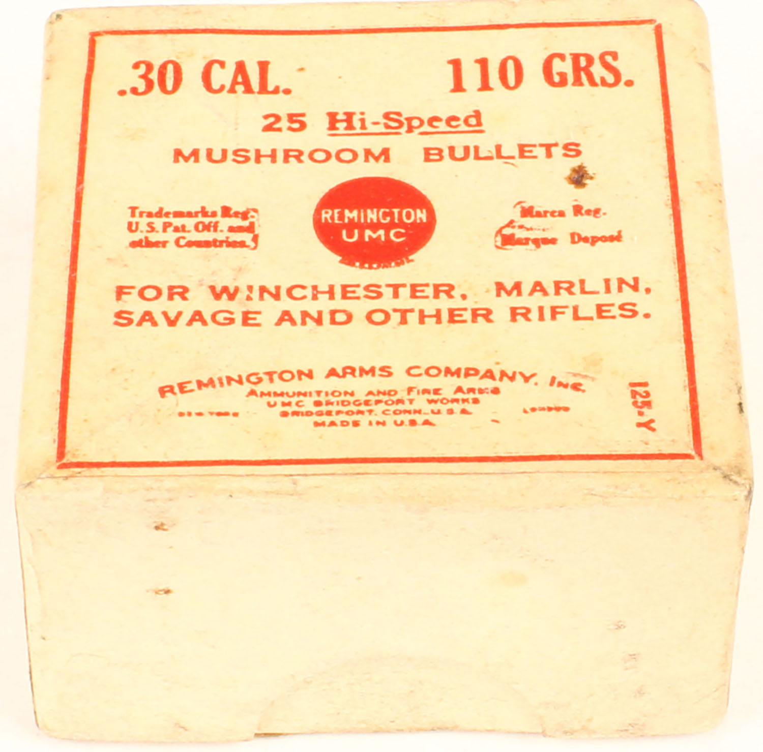 Remington Bullet box, .30 Cal Hi-Speed Mushroom Bullets, 110 Grs, 2pc, Full & Sealed. Grade: Excellent ++ - Value: 10 to 50