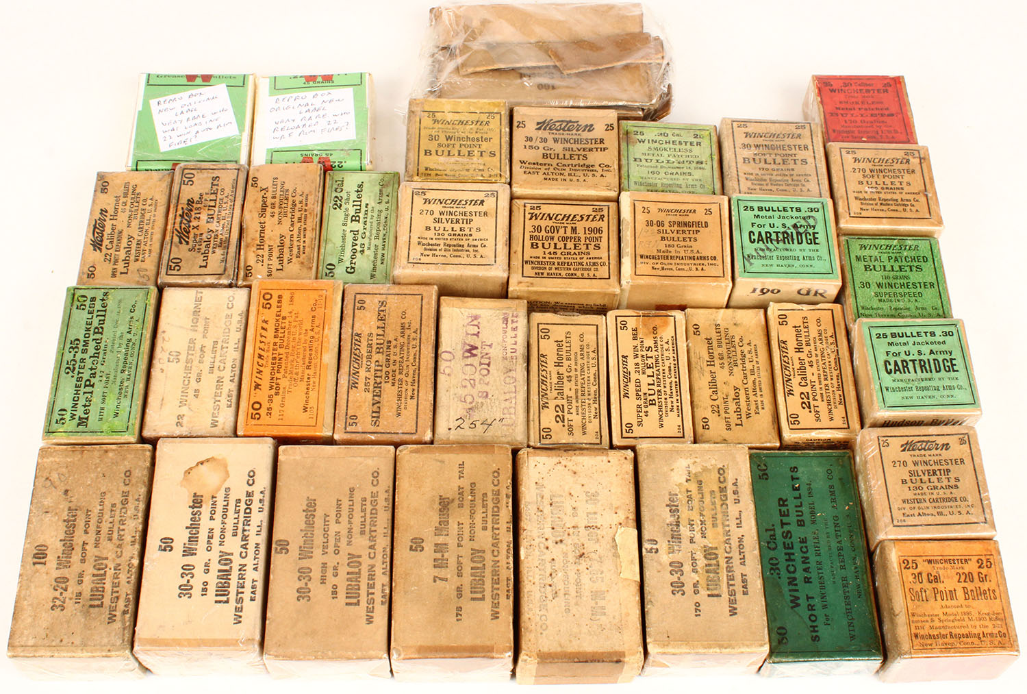 Large lot of partial or empty bullet boxes. Grade: Excellent - Value: 2 to 50