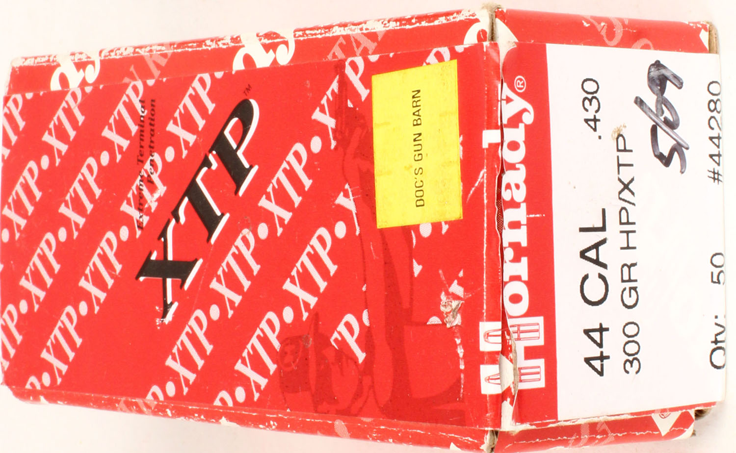 Hornady, XTP, .44 Cal. (.430''), 300 GR. HP/XTP, Full, 1pc. Red & white box, box is solid with minty color, very minor shelf wear, bullets are minty. Grade: Excellent ++ - Value: 10 to 50