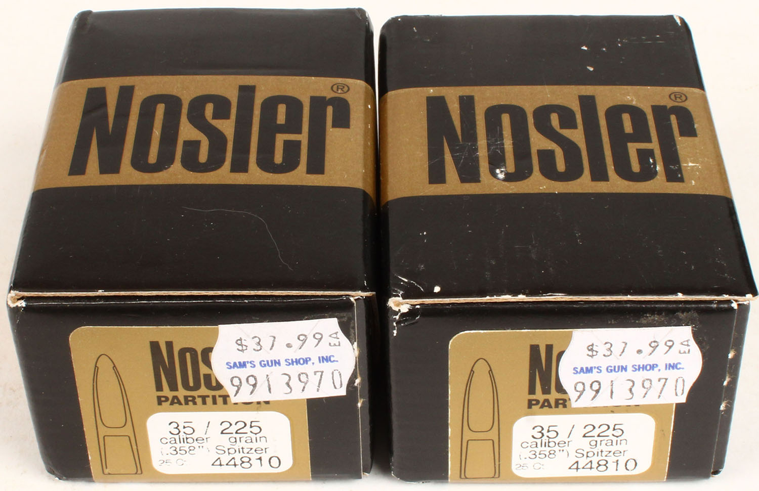Nosler, Partition, Lot of (2) .35 Cal. (.358''), 225 Gr. Spitzer, both boxes are FULL & SEALED, boxes are minty. Grade: MINT - Value: 20 to 100