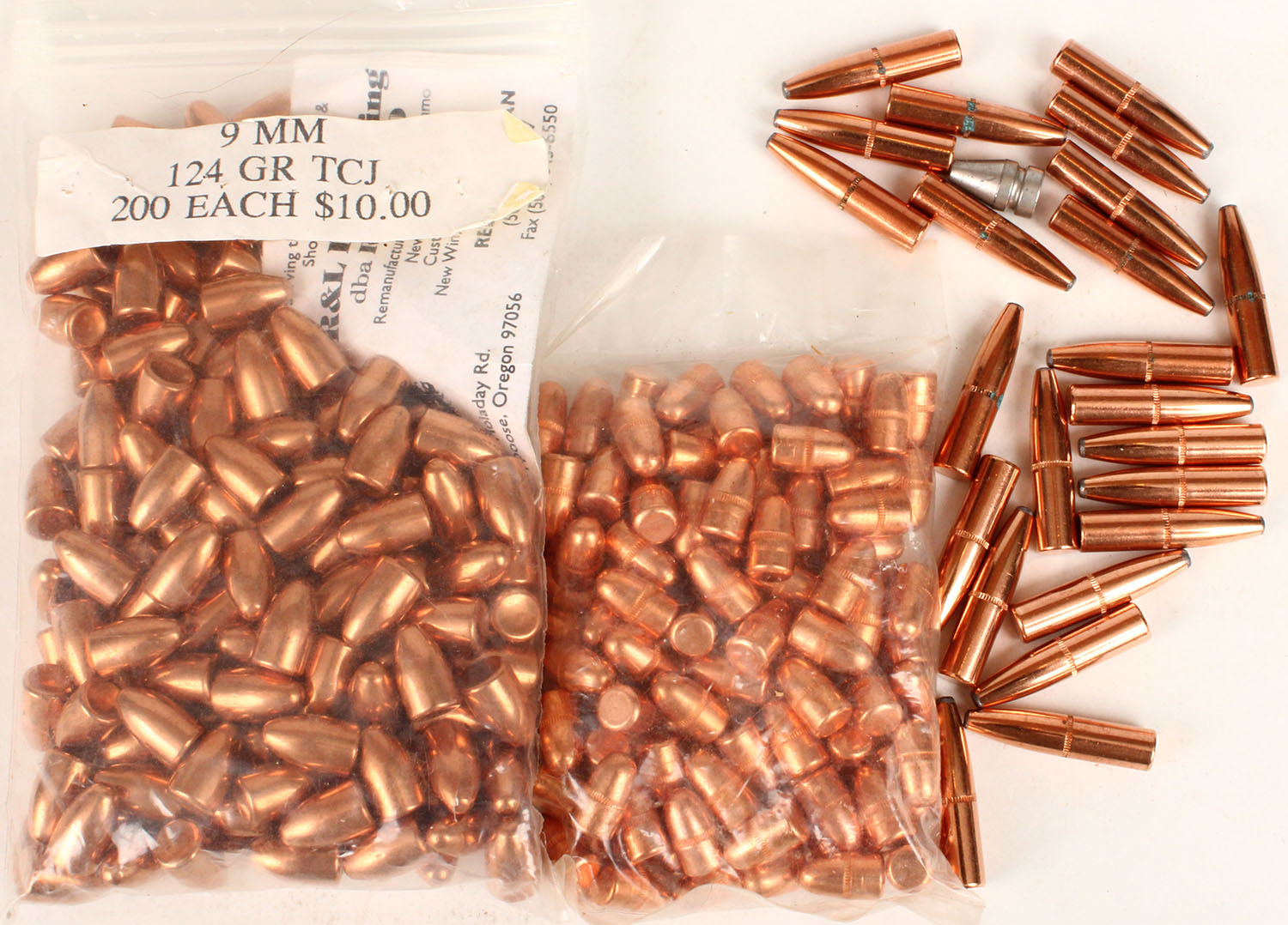 Unknown Mfg., large lot of bullets including .30 Luger/Mauser - 95 Gr. TMJ-RN & 9mm - 124 Gr. TCJ, Bullets are minty. Grade: Excellent ++ - Value: 6 to 30