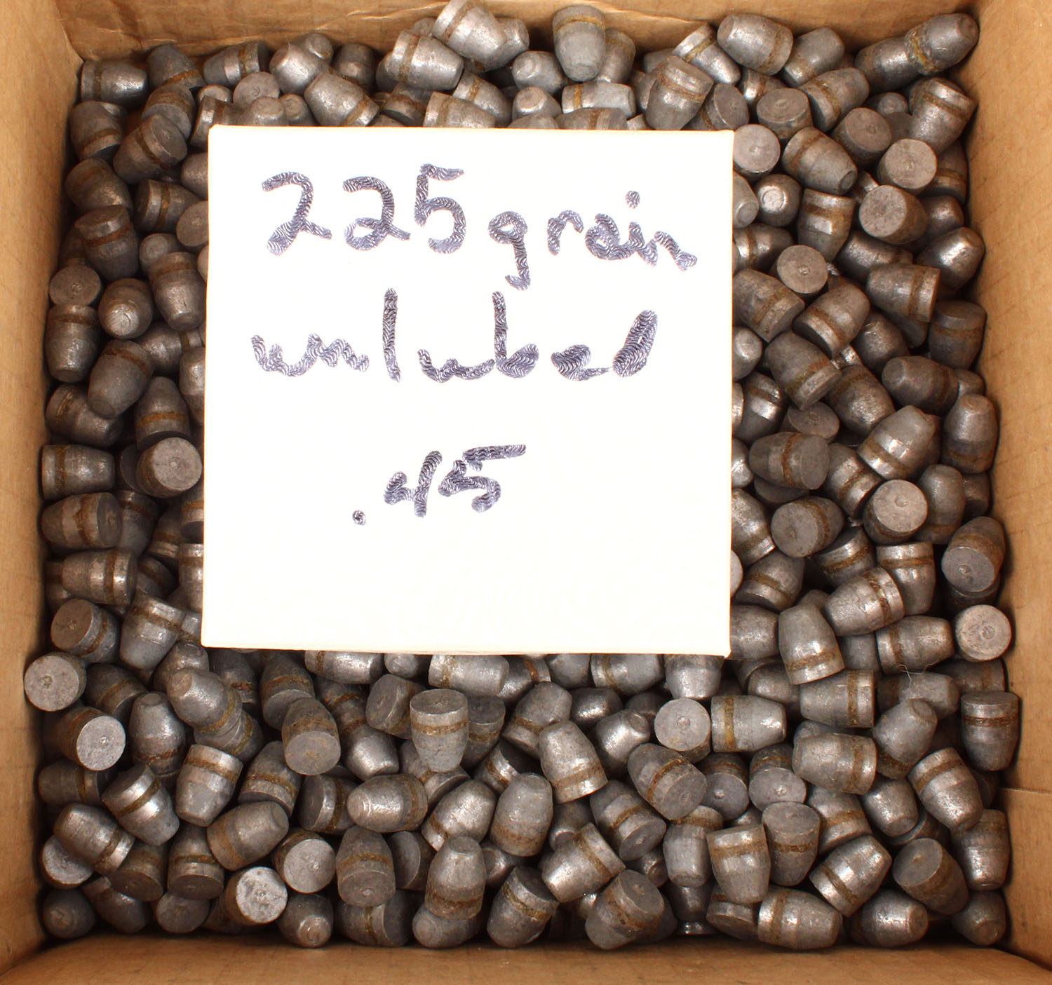 Unknown Mfg., Very large lot of bullets, box indicates they are 225 Grain Lubricated .45, bullets are excellent. Grade: Excellent - Value: 10 to 100