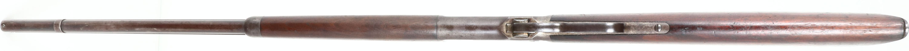 Winchester, Model 1886, CAL: 40-65 WCF, MFG: 1889, SN: 33988, Lever Action Rifle, 26'' Octagon barrel, Full mag. The original straight grip wood stocks are very good & solid. The original finish is present, with darkening from protective oils added over time. The stocks display several minor contusions & handling marks. There is a small 1/2'' hairline grain crack at the toe. The metal blue finish toned to a mix of remaining original blue & dark chocolate brown patina, with small areas worn to metal grey. The case-hardened receiver has the same metal patina & look as barrel & mag. Bore is very good, with spotty areas of pitting amongst proud rifling. The barrel holds an adjustable rear sight & silver pinched blade front sight. Buttstock carries a crescent metal buttplate. Tight action. A nice & all original 1886 rifle. Antique, No FFL Req. - Value: 2000 to 4000