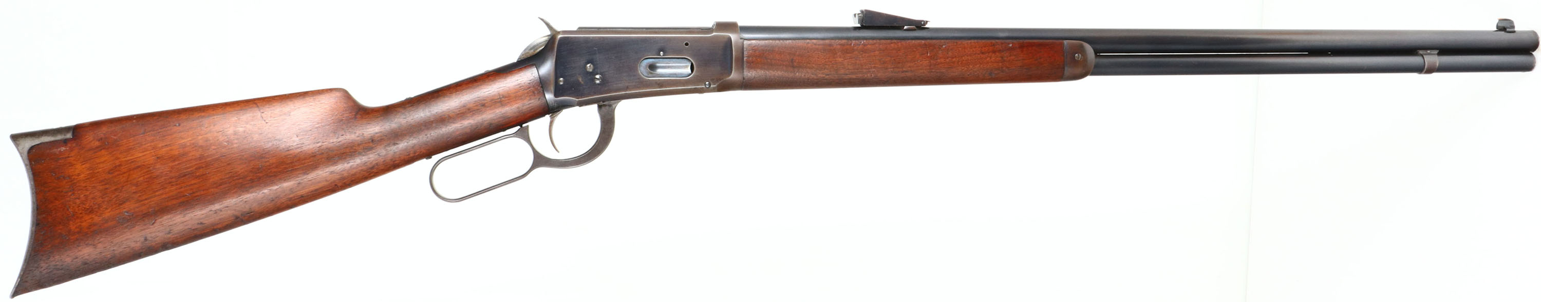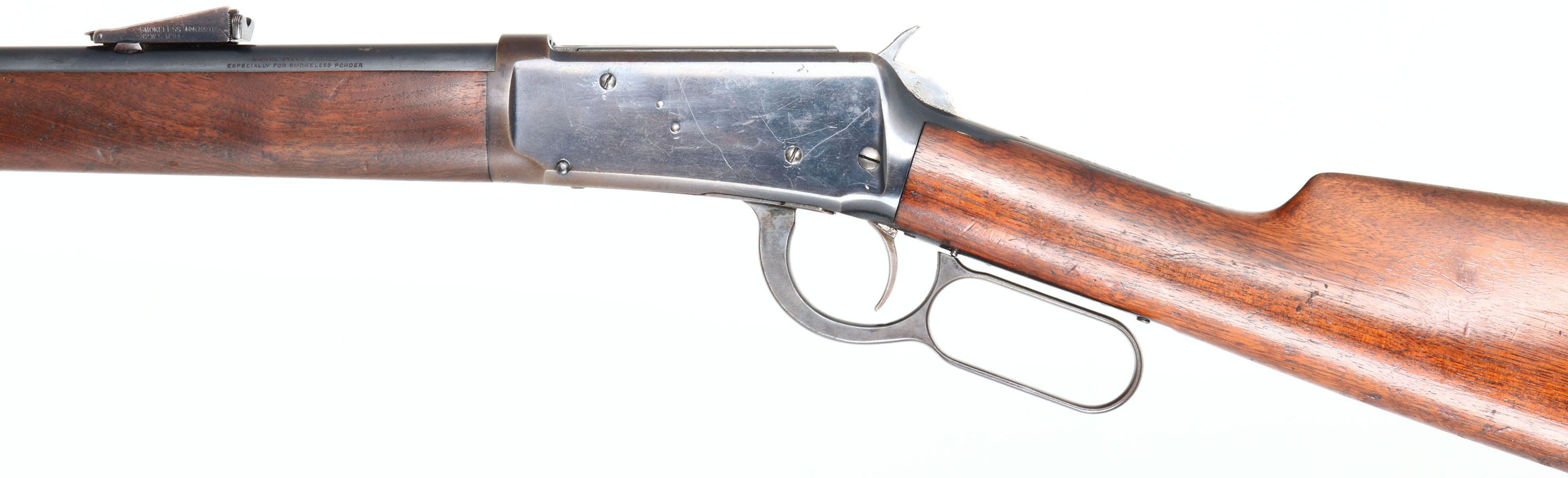 Winchester, Model 1894, CAL: 32 W.S., MFG: 1905, SN: 270746, Lever Action Rifle, 26'' Round Nickel Steel barrel, Full mag. The original wood stocks are very good & solid, with the original finish. There are several minor scratches & dings spread thinly on the stocks, but there is also a chattering of numerous contusions on the belly of the stock concentrated near the toe end. The barrel & mag retain 90% of the original factory blue finish, 70% on the receiver, with the loss on the receiver mostly toning to a brown patina on the right side. The case-hardened lever & hammer still show muted remains case-colors. Bore is excellent. Barrel carries a Winchester Smokeless 50 - 100 yds. .32 W.S. M.94 rear ramp sight & a tall blade front sight. Crescent metal buttplate. A very nice & original condition 1894 rifle. FFL & C&R Req. - Value: 2500 to 4000