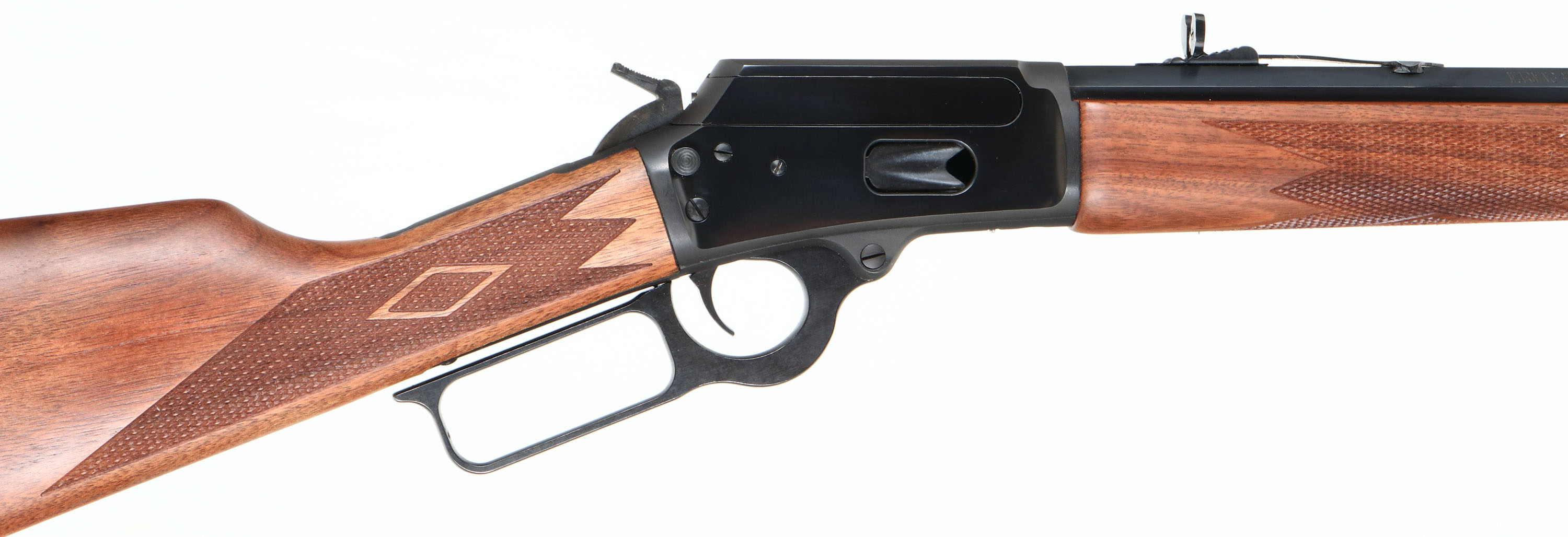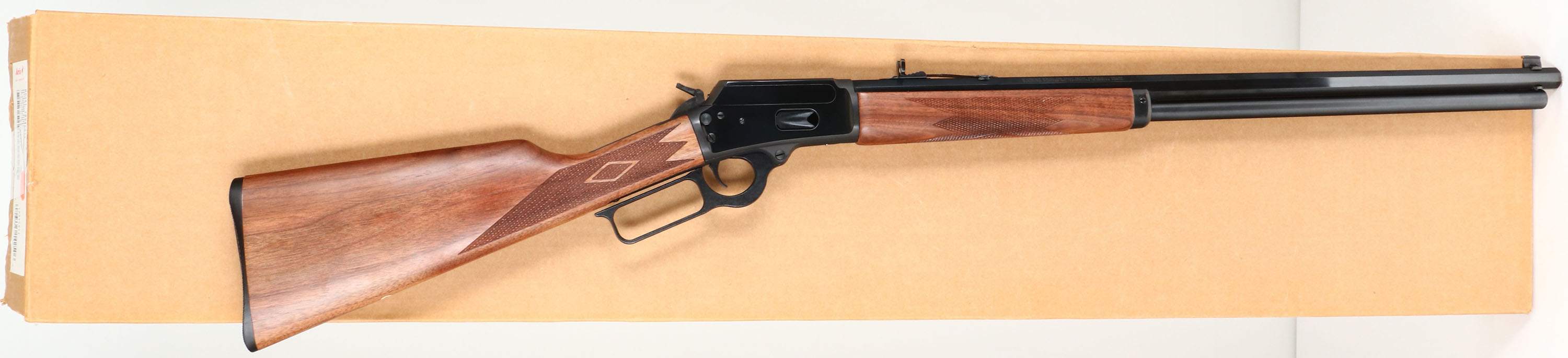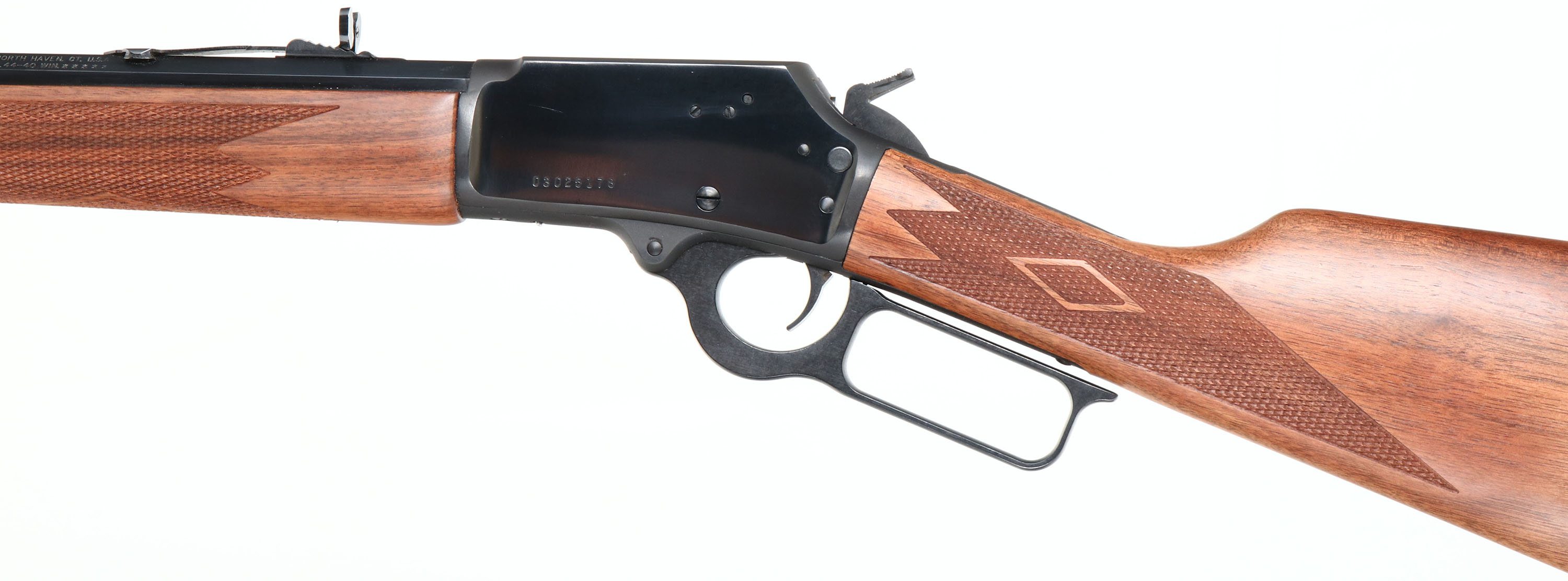 NEW BOXED, Marlin, 1894 Cowboy Limited, CAL: .44-40 WIN, MFG: 1994, Modern: 03025178, Lever Action Rifle , 24'' Octagon barrel. Full Mag. The upper tang is marked with the serial number. The top of the receiver has foliate engraving & is marked ''MARLIN SAFETY''. The stocks are two-piece checkered walnut with an oiled finish, capped forearm, straight grip & comb, & a Marlin plastic buttplate. The buttstock has the ''Marlin Bullseye'' in the belly. The metal blue finish rates 100% overall. Bore is mint. Barrel carries factory buckhorn rear & front blade sights. Comes in original matching box, with packaging & paperwork. NOS. A fantastic cowboy shooter for the guy who wants the rifle to match his sidearm. FFL Req. - Value: 1000 to 1500
