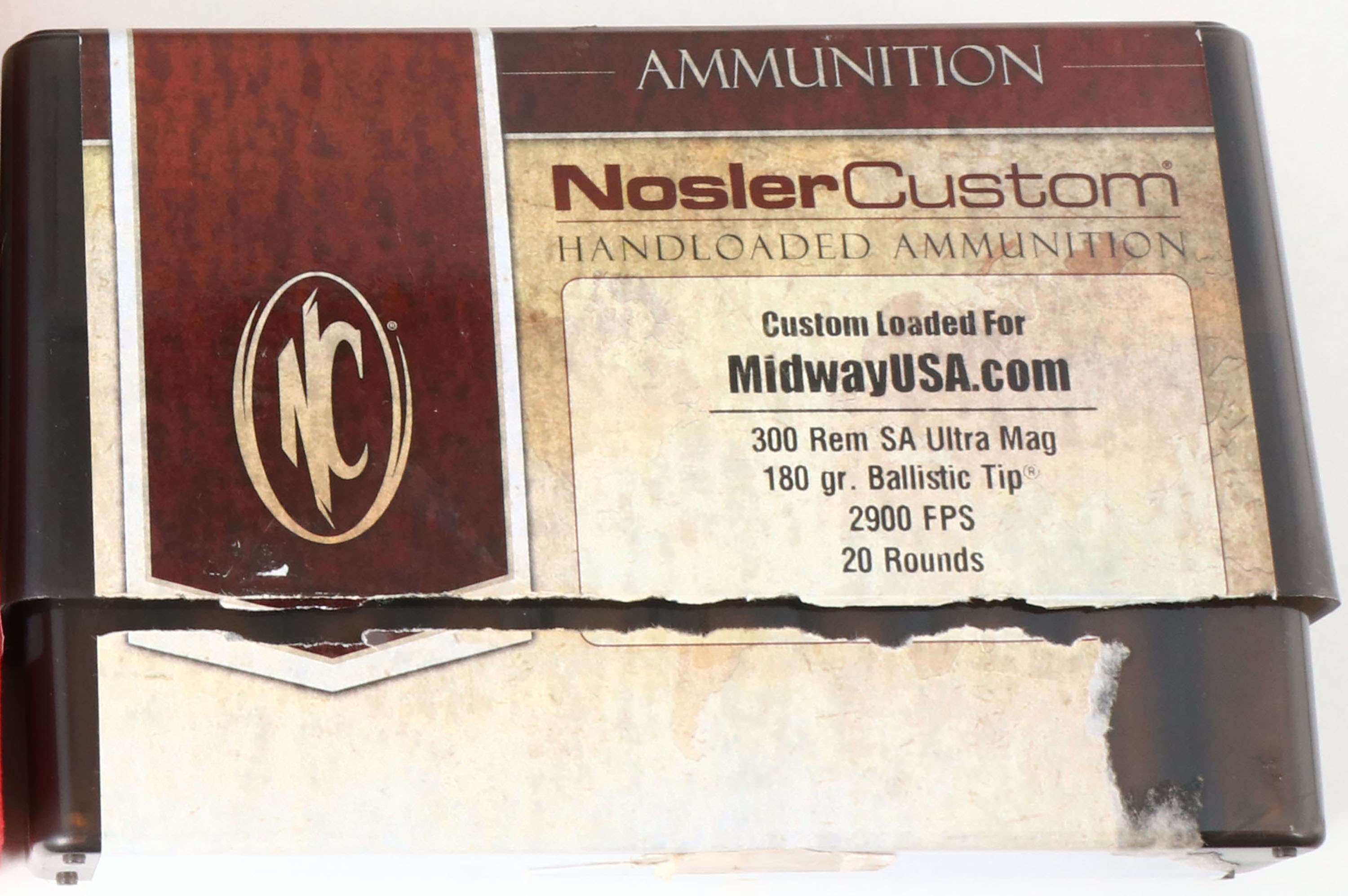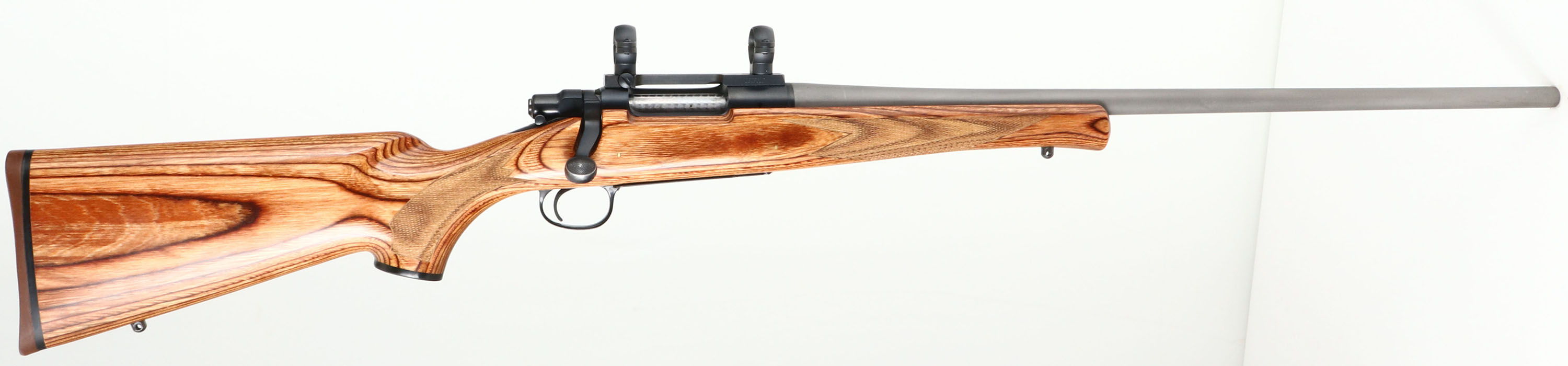 Remington, Model SEVEN, CAL: 300 REM SA ULTRA MAG, MFG: 2003, SN: 7769327, Bolt Action Rifle, 24'' barrel. The original checkered & capped pistol grip laminated wood stock is excellent. The are only a couple of tiny scuffs & dings to the original finish. The original metal blue finish on the receiver rates 98%, while the stainless barrel is excellent with a few minor scuff or scrapes. Bore is excellent. The receiver holds a Leupold scope base & scope rings, while the barrel carries no sight provisions. Stock carries a Remington solid red recoil pad. Sling studs. Excellent overall condition. Comes with a full box of Nosler Ammo. FFL Req. - Value: 500 to 1000