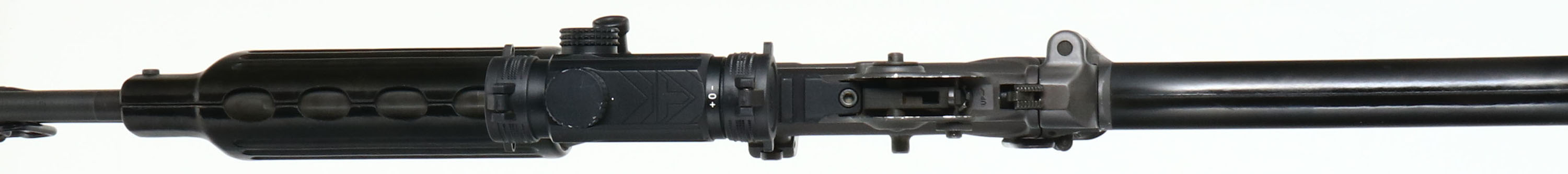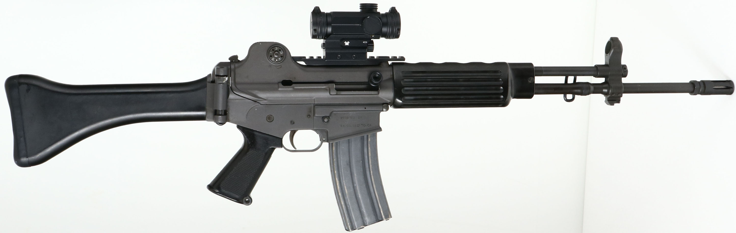 Daewoo Precision Industries, AR-100, CAL: 5.56, MFG: Modern, SN: 485966, Semi Auto Rifle, 18'' barrel. The synthetic collapsible folding stock, grip & grooved forend are very good & solid. There are handling marks & overall light wear from honest use. The parkerized finish on the receiver is very good, with scrapes & blemishes throughout. The military style finish on the barrel is very good, with some spotting near the forend. Bore is very good, slightly rough. The rifle is fitted with its original iron sights & there is an added upper picatinny rail that holds a Vortex Spitfire AR Red-Dot sight. Sling loops present. Comes with a 30rd mag. FFL Req. - Value: 1000 to 2000