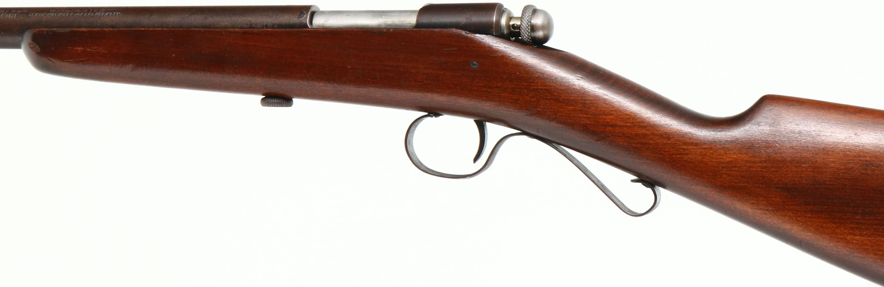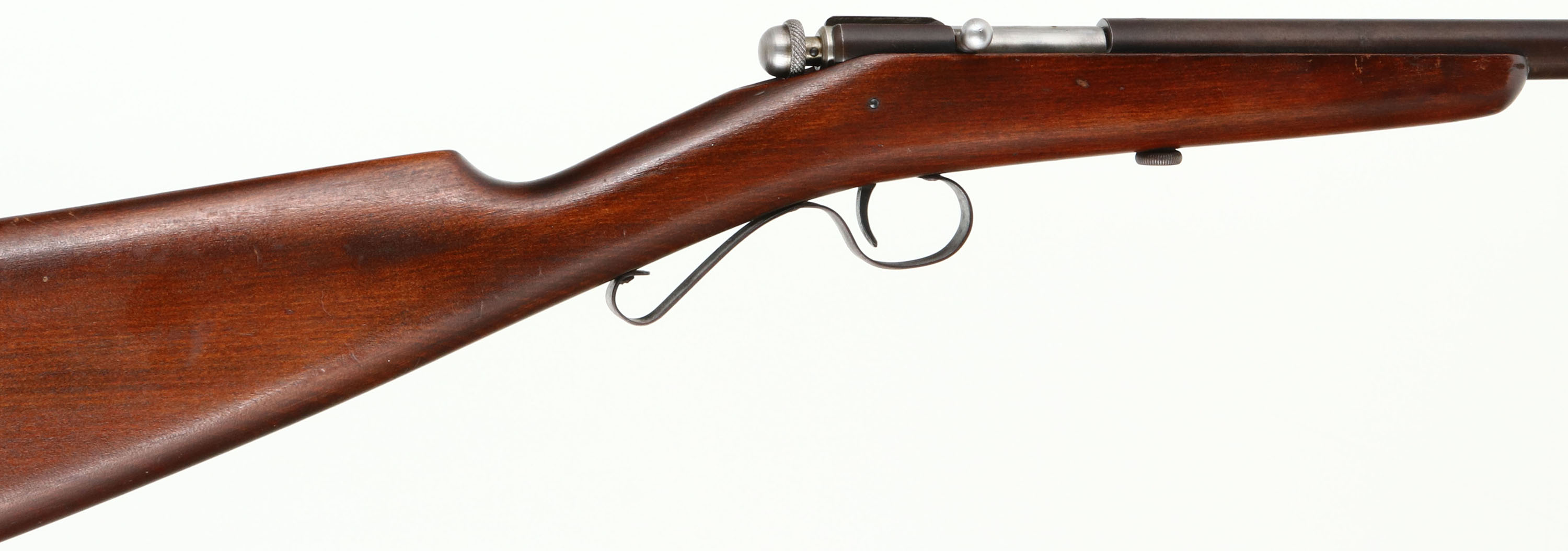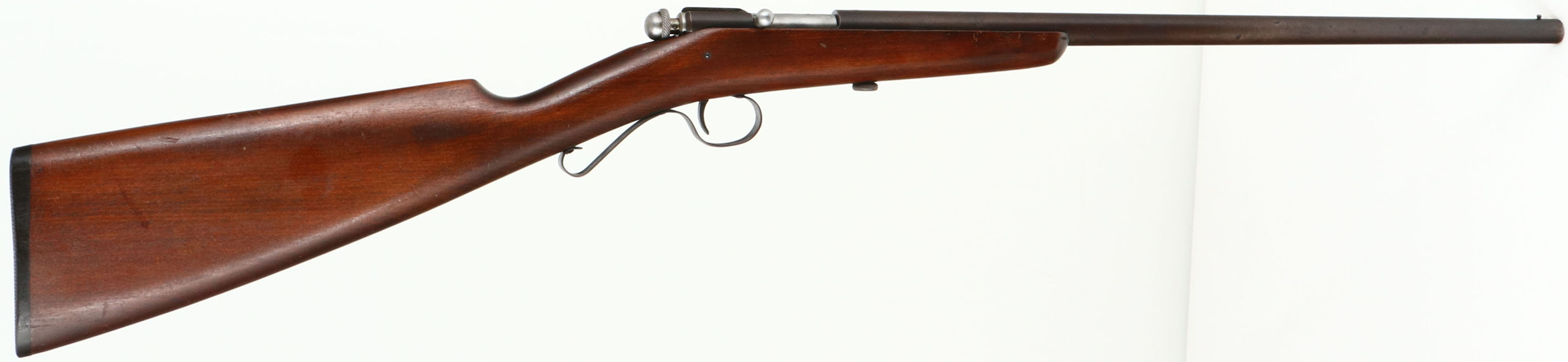 Winchester, Model 36 SHOTGUN, 9mm Rim Fire Cal., MFG. 1920-27, SN: None, Bolt Action Rifle, Only 20,000 produced, 17 1/2'' Tapered round barrel. The original straight grip wood stock is excellent, with a few minor nicks or contusions to the original finish. The original metal finish has toned to a smooth brown patina retained at 50% coverage. Scalloped trigger guard. Bore is very good. Original ''Winchester'' plastic buttplate with engraved screw heads. An excellent looking example of a rare & collectible little smoothbore/shotgun. FFL or C&R Req. - Value: 600 to 1200