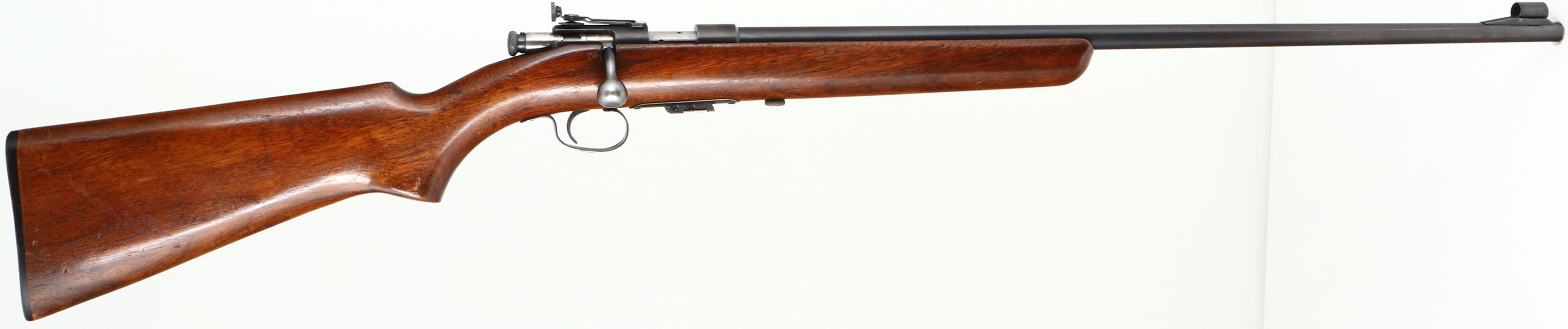 Winchester, Model 69, CAL: 22 S,L, & LR, MFG: 1935-63, SN: NONE, Bolt Action Rifle, 25'' barrel. The original flat pistol grip wood stock is excellent, with very good original finish showing minor thinning & handling marks. The original metal blue finish rates 85% overall. Bore is excellent. The rifle is fitted with the correct Winchester wheel adjusting, aperture receiver sight & ramped hooded front sight. Buttstock carries a Winchester marked plastic buttplate. Comes with original ''Winchester'' ''69'' marked magazine. A very nice original condition & collectible example. FFL or C&R Req. - Value: 300 to 600