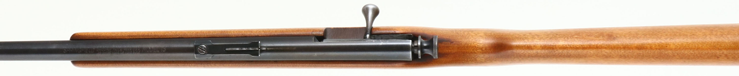 Savage, Springfield Model 15, CAL: 22 S.L.LR, MFG: 1930's - 40's, SN: NSN, Bolt Action Rifle, 22'' barrel. The flat pistol gip wood stock is very good & solid, having been lightly sanded & refinished. There are few handling scuffs remaining & there is added punch dot texturing at the forend & pistol grip. The metal blue finish rates 75% overall. Bore is excellent. The barrel holds an adustable rear sight & blade front sight. Stock carries a homemade rubber recoil pad. FFL or C&R Req. - Value: 80 to 200