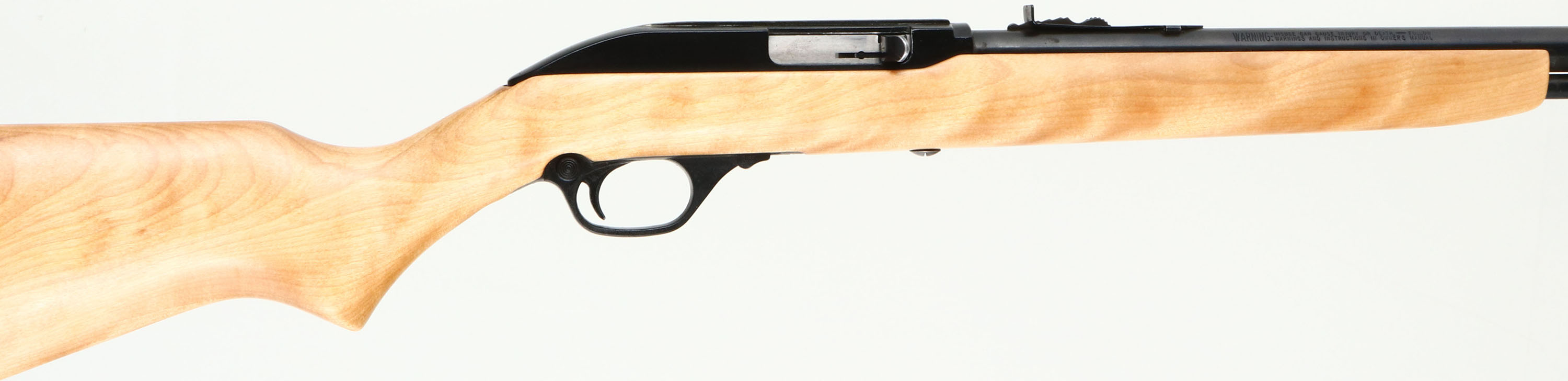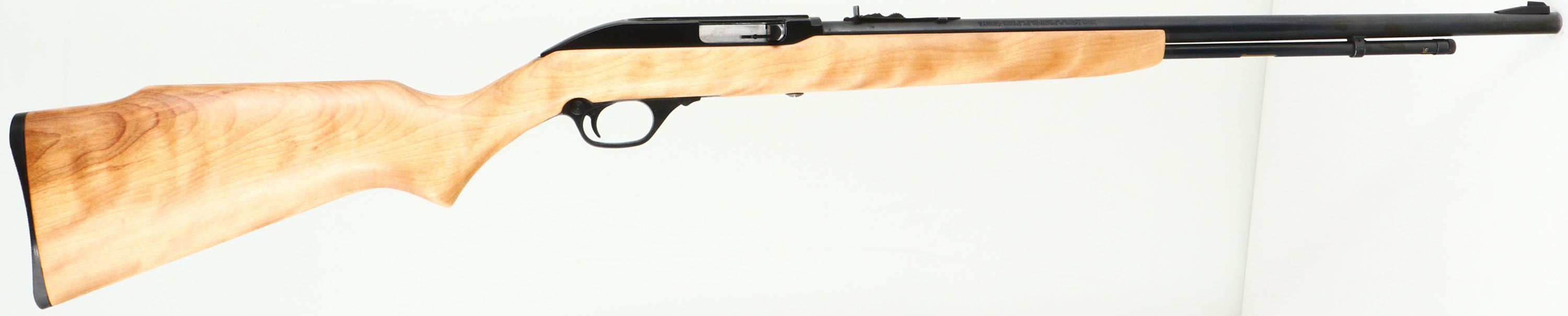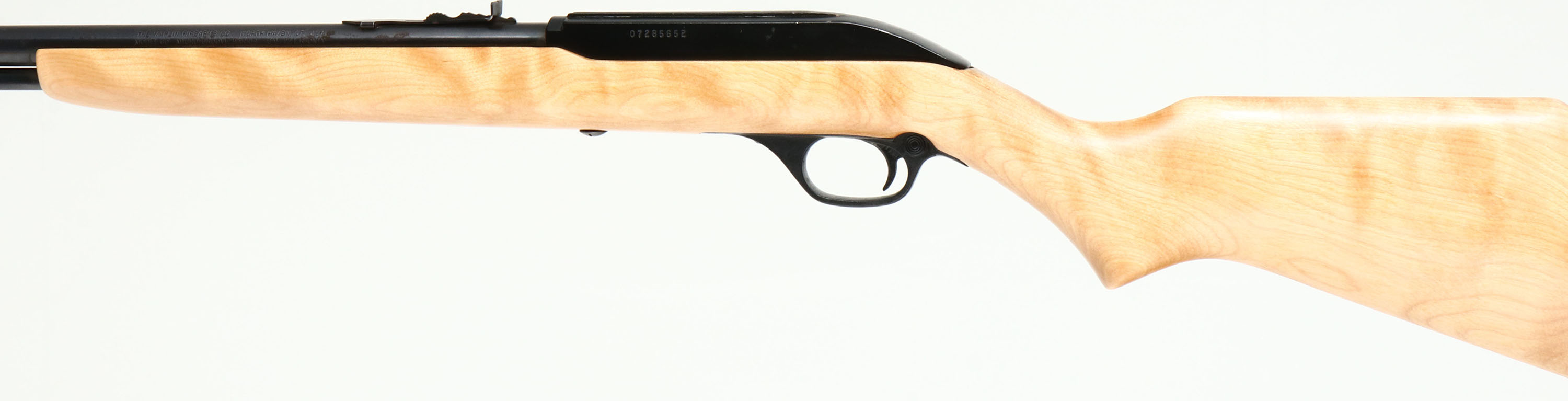 Marlin, Model 60, CAL: 22 LR, MFG: Modern, SN: 07285652, Semi Auto Rifle, 22'' barrel. The upgraded aftermarket flat pistol grip Monte Carlo stock is excellent, featuring a beautiful striped & rippled wood grain. The metal blue finish on the barrel rates 90% & the matte black finish on the receiver rates 90%. Bore is excellent. The barrel holds a standard adjustable rear sight & ramp elevated blade front sight. Stock carries a Marlin checkered plastic buttplate. FFL Req. - Value: 150 to 250
