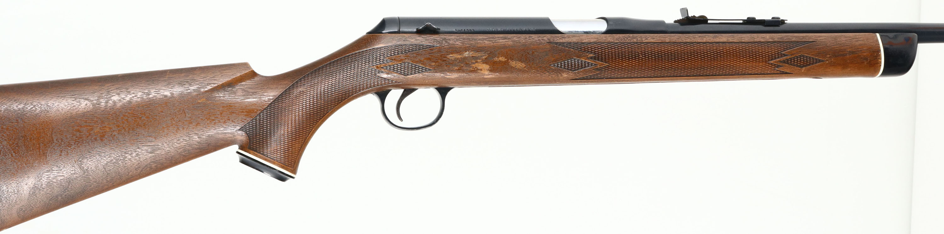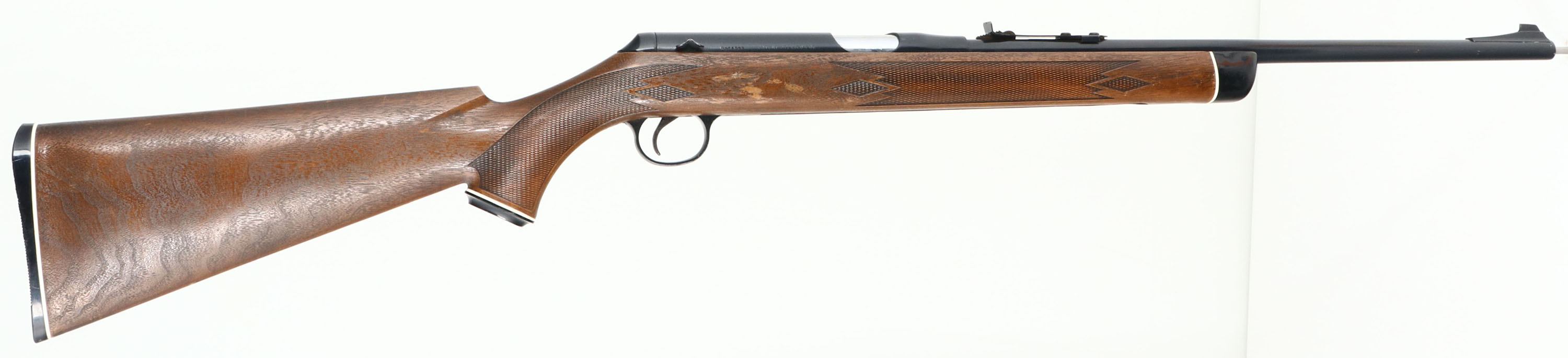 Daisy & Heddon, VL Rifle, CAL: .22 Cal. Caseless VL Ammo, S/N: A036033, 18'' barrel. The original checkered & capped pistol grip wood grain plastic stock, with ebony forend tip is excellent & solid. There are scratches, scrapes & a few areas of thinning or wear at the carry points. The metal blue finish rates 97% overall, with a couple areas of flaking or nicks revealing metal gray. Bore shows cleaned roughness amongst worn thin rifling. The barrel holds an adjustable rear sight & ramp elevated blade front sight. Stock carries a VL grooved plastic buttplate. One of 23,000 produced. Comes with 374 rds of VL caseless .22 ammo, (2) full boxes of 100, (1) partial box of 90 & 84 loose rds. FFL Req. - Value: 200 to 400