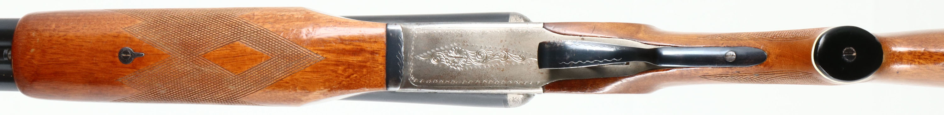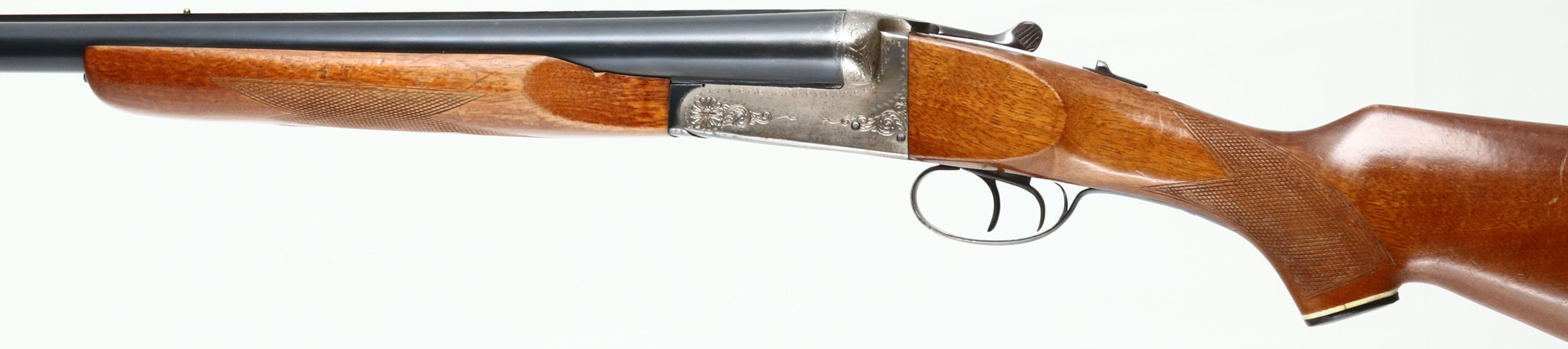 Tradewinds, Model G-1032, CAL: 10GA, MFG: 1960's-70's, SN: 162130, Break Action SxS Shotgun, Choke: F/F, 32'' barrels. The original checkered & capped pistol grip stock, with beavertail forend are very good. There are contusions, scrapes & dings, with thinning finish at the carry points. The restored metal blue finish on the barrels rates 95% overall, with minor blemishes & speckling. The receiver is fully worn to gun metal grey, with light spotting & speckling throughout. The receiver, barrel ends, break lever, trigger guard & screws all display simple ornamental engraving. Bores are very good, they have striations consistent with normal use. The solid, matted rib holds a mid rib & front bead. Stock carries a worn, ventilated black rubber recoil pad. Double triggers. LOP: , DAH: , DAC: . FFL or C&R Req. - Value: 250 to 450