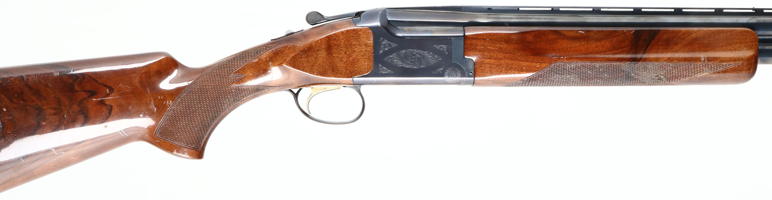 Browning, Citori, CAL: 12GA, MFG: 1986, SN: 24574PT153, Break Action O/U shotgun, Choke: Invector Choke System, 28'' Magna Ported barrels. The original, checkered flat pistol grip wood stock is excellent. There are scratches, scrapes & dings to the high gloss finish. The metal blue finish rates 95% overall. Bores are excellent. The ventilated & matted rib holds a small steel mid-rib bead & front bead. Browning ventilated brown rubber recoil pad. Comes with a set of Invector Chokes in a plastic hard case. A quality utilitarian shotgun. LOP: 14 1/4'' overpad, DAH: 1 3/4'', DAC: 1 3/16''. FFL Req. - Value: 700 to 1200