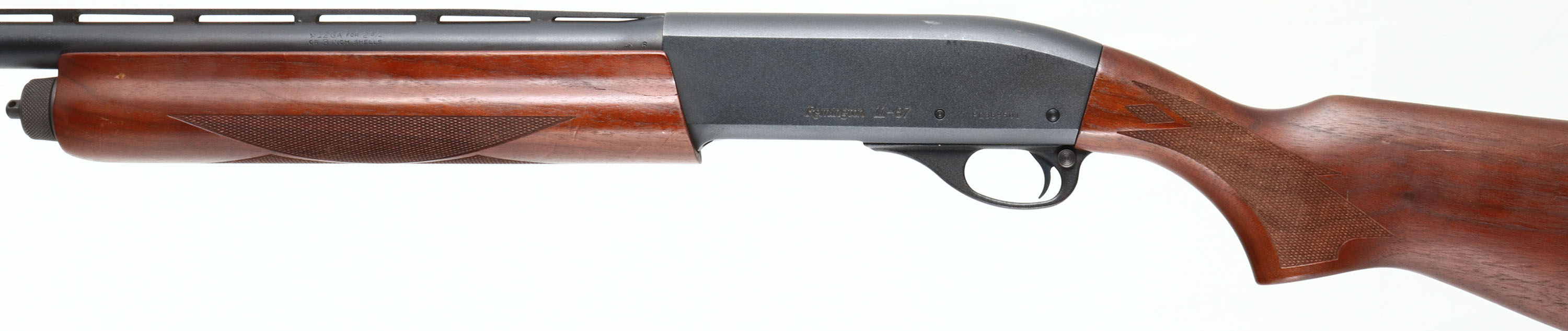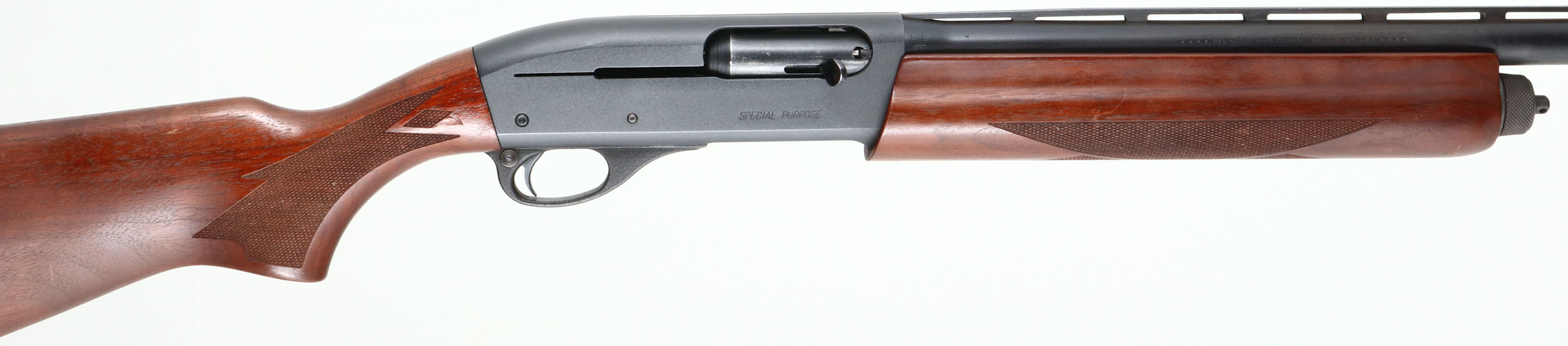 Remington, Model 11-87 SPECIAL PURPOSE, 12 GA., MFG. Modern, SN: PC369501, Semi-auto, 28'' Ventilated rib, 2 bead barrel, 2 3/4 & 3'' Modified screw in choke system, The factory walnut, checkered & flat pistol grip stock & forearm are excellent, retaining all of it's original factory finish, with only a couple of minor finish level handling dings, checkering is crisp. There is a 4'' grain crack on the left side of the forend. Original metal finish is 99%. Bore is excellent, Factory installed Remington buttpad. Sling studs. LOP 13 7/8''. A quality semi shotgun. FFL Req. - Value: 300 to 600