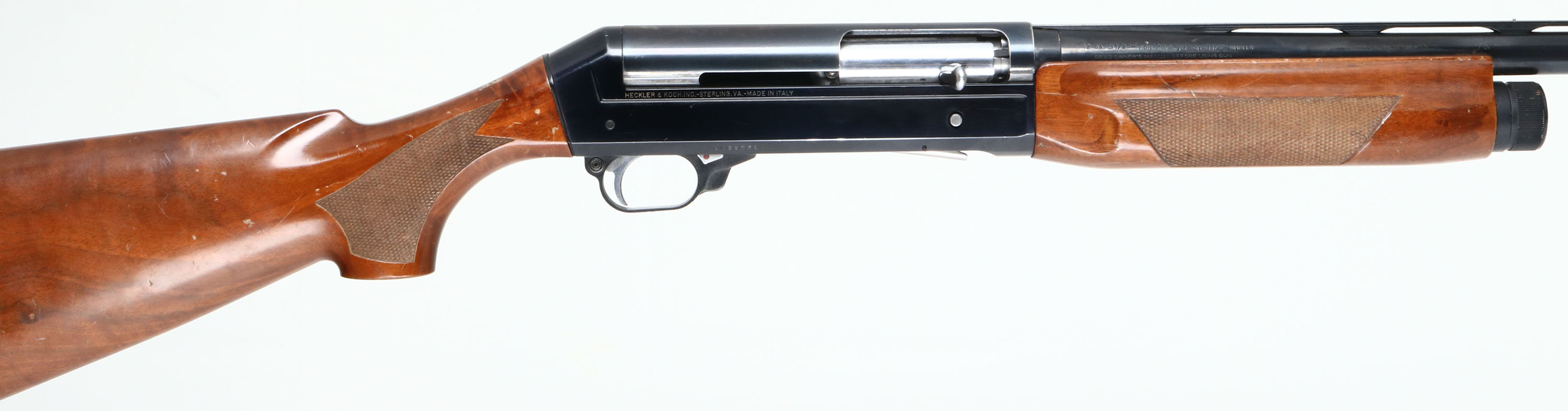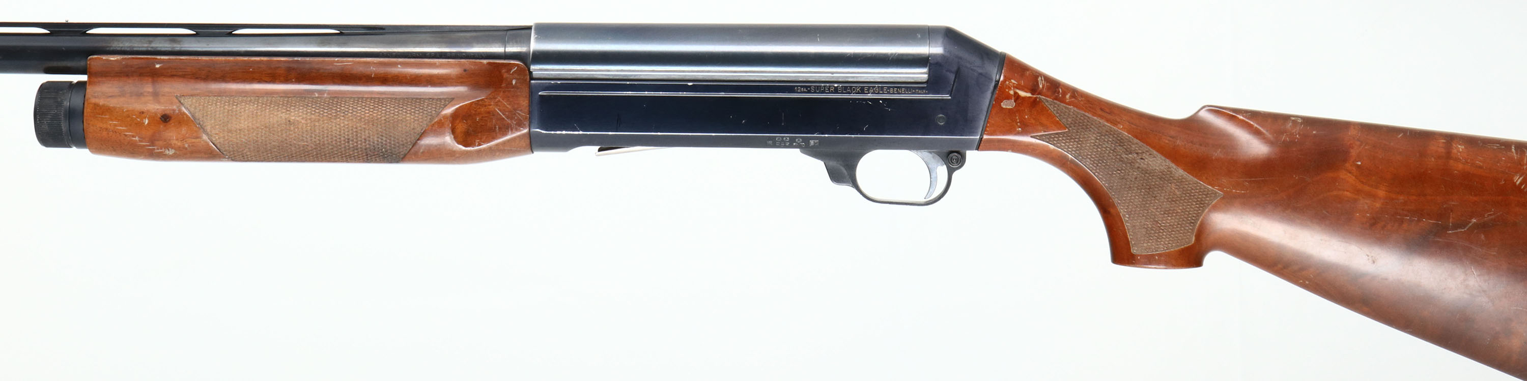 Benelli, Super Black Eagle, Carcassa, 12 GA, MFG: Modern, SN: U022774, Semi-Auto Shotgun, 2 3/4'', 3'' & 3 1/2'' shells, 26'' Ventilated rib barrel, with mid rib bead & red front sight. The original checkered & inlaid flat pistol grip stocks are very good, with numerous scrapes, nicks & contusions to the original finish. The factory metal blue finish rates 90% on barrel, 80% on the receiver. Bore is excellent. Screw in choke. Benelli Recoil pad. LOP: 14 1/4'' over pad. FFL Req. - Value: 400 to 800