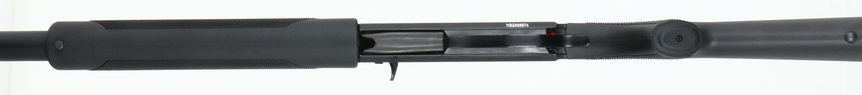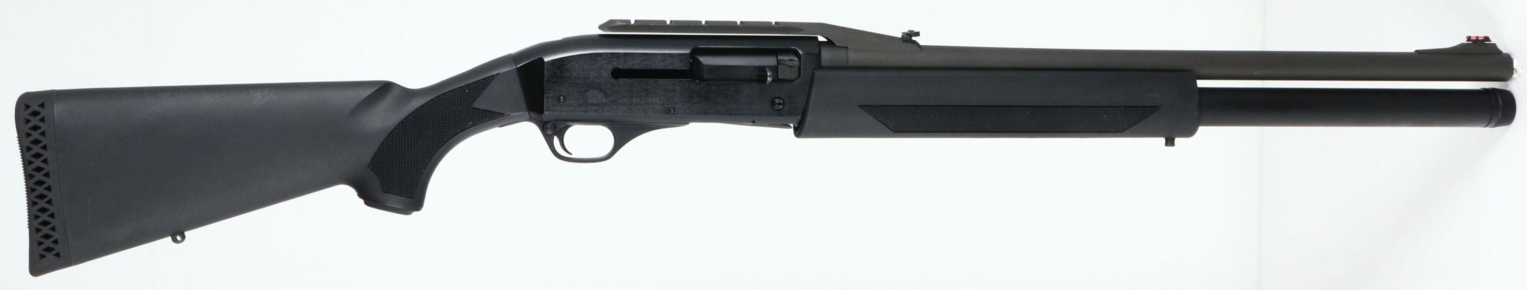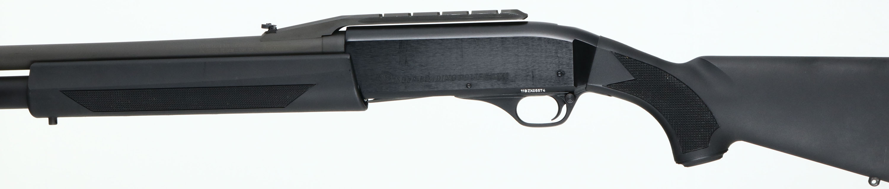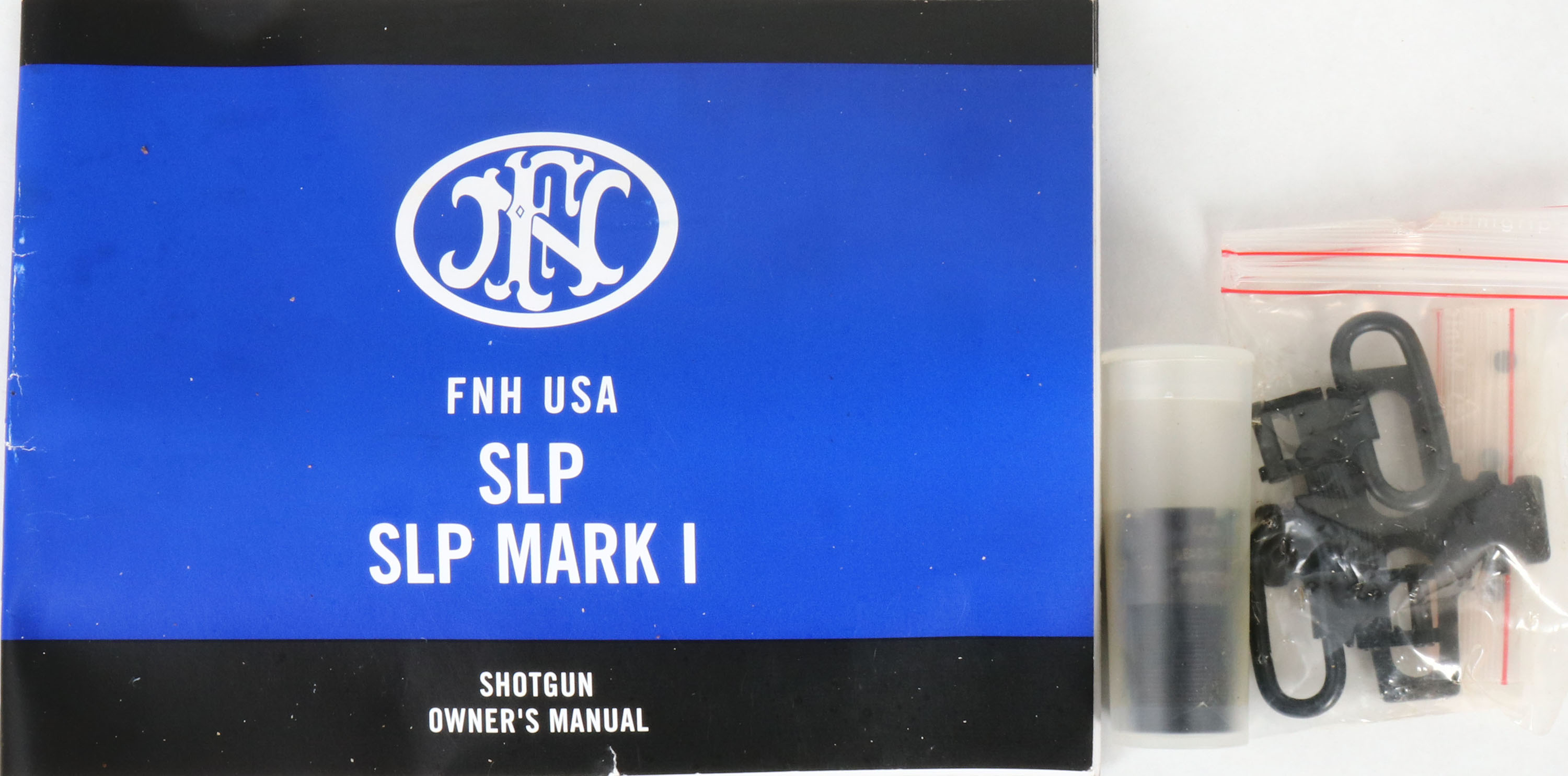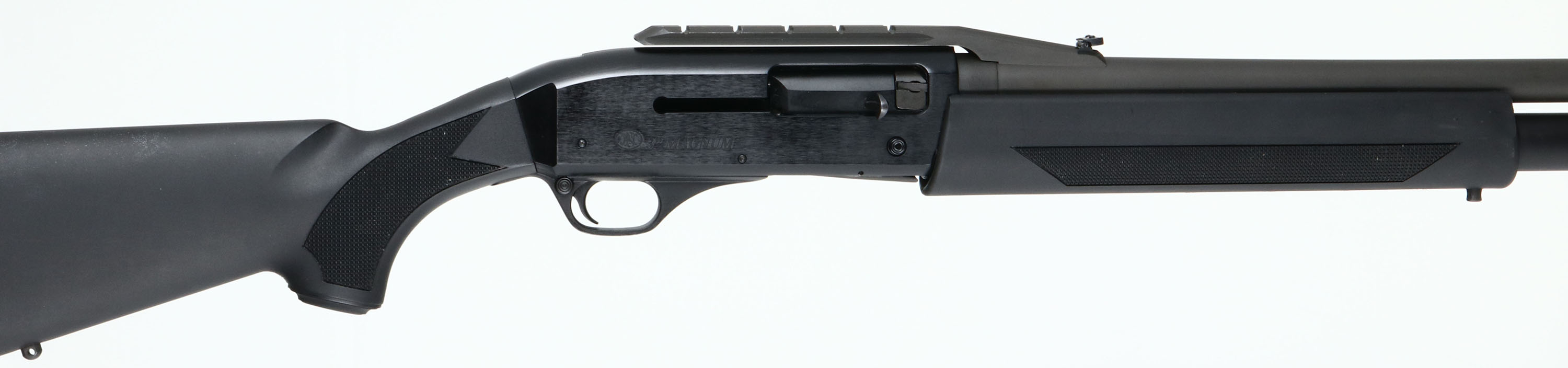 F.N., SLP (Self Loading Police) MK1, 12 GA, MFG: Modern, SN: 11BZX05574, Semi-Auto Shotgun, 2 3/4'' & 3'' shells, Invector interchangeable choke tubes, 22'' Ventilated rib barrel. High capacity 8+1 full length mag. The original checkered & capped pistol grip synthetic stocks are excellent, with minor rubs. The factory metal finishes rate 99% on barrel & aircraft-grade aluminum alloy receiver. Hard-chromed bore is very good. Screw in chokes. Barrel top-mounted cantilever Weaver-pattern accessory rail, with folding rear sight & front red fiber optic front sight. Factory ventilated recoil pad. Sling studs. Comes with owner's manual, sling swivels, additional choke tube & tool. MSRP: $1324 LOP: 14 5/8'' over pad. FFL Req. - Value: 700 to 1300