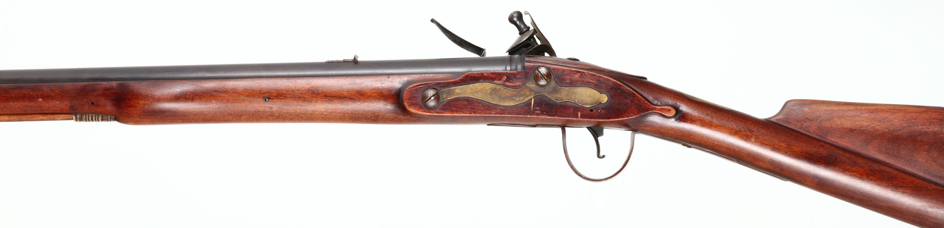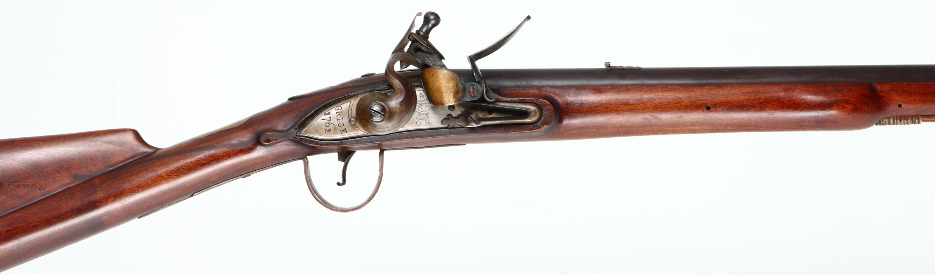 Davide Pedersoli, Brown Bess Reproduction, CAL: .54, MFG: 1970's- Present, S/N: N/A, Flintlock Muzzleloader, 30 1/2'' round barrel. The straight wrist wood stock is very good with nicks, ding, scratches, wear from use/ageThe mtal finish on the barrel rates 90% with light scratches. Lock plate is marked, ''GRICE'', ''1762'', Crown over ''G R''. Bore is very good bright with light roughness. Blade front sight, Fixed V-notch rear sight. Brass buttplate with wear & patina. Comes with ram rod. Muzzleloader, No FFL Req. - Value: 200 to 600