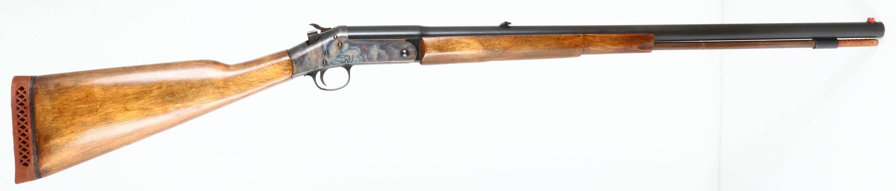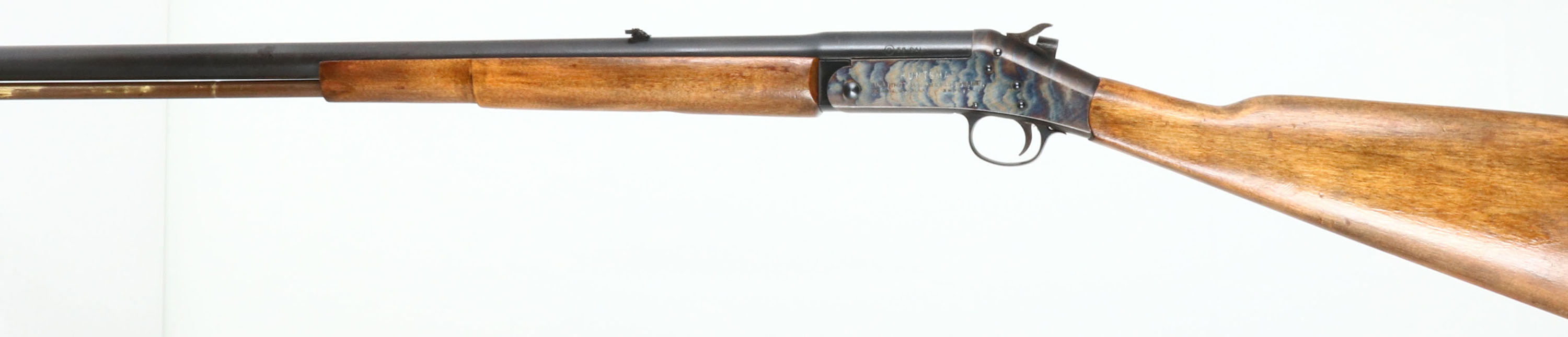 Harrington & Richardson, Model: Huntsman, CAL: .58 MFG: 1974, S/N: AM259842, Break Action Percussion Muzzleloader, 28'' round barrel. The straight wrist wood stock is very good with minor nicks, dings, & scratches. The metal finish on the barrel rates 90% with one spot of rust, The case hardening finish on the receiver rates 95%,, bore is excellent with very light wear. Painted blade front sight with flip up U-notch rear sight, rubber ventilated buttpad. Has ram rod. Muzzleloader, No FFL Req. - Value: 200 to 400