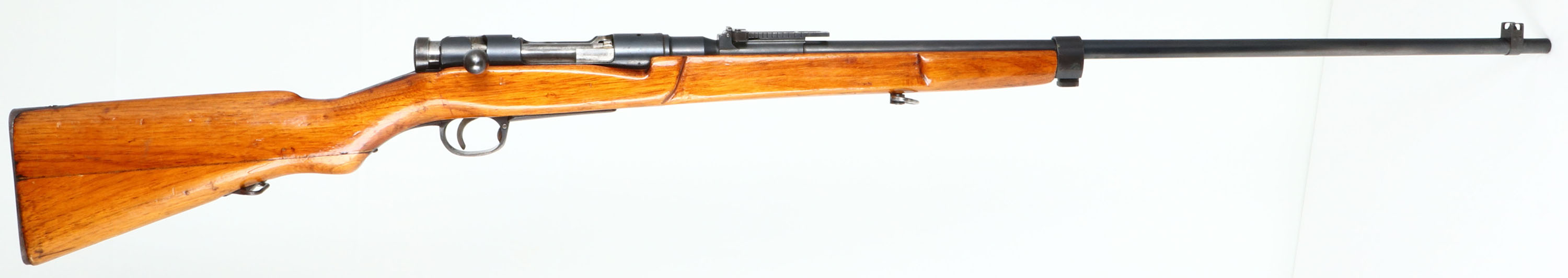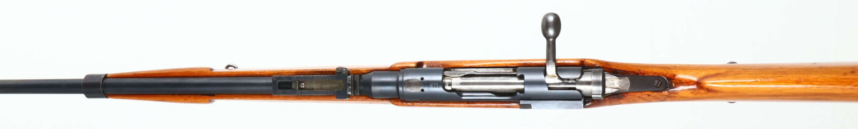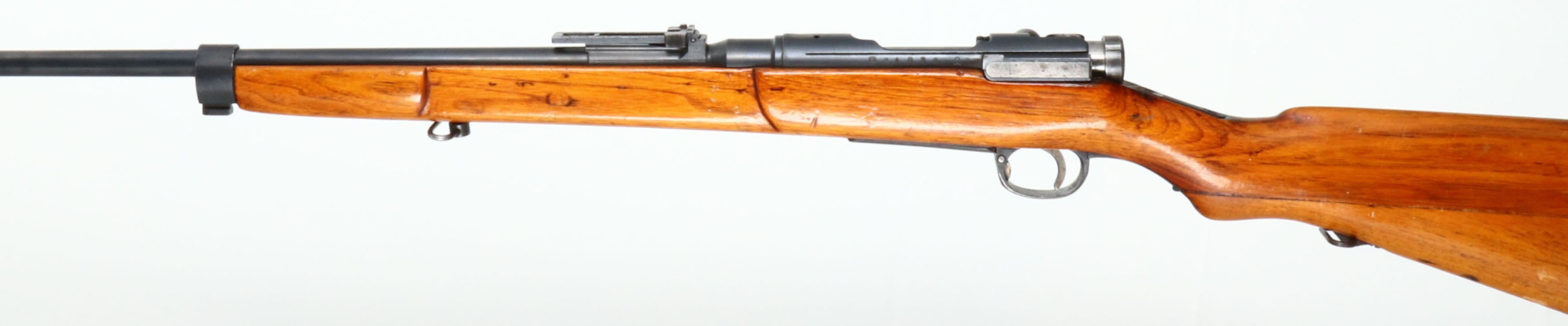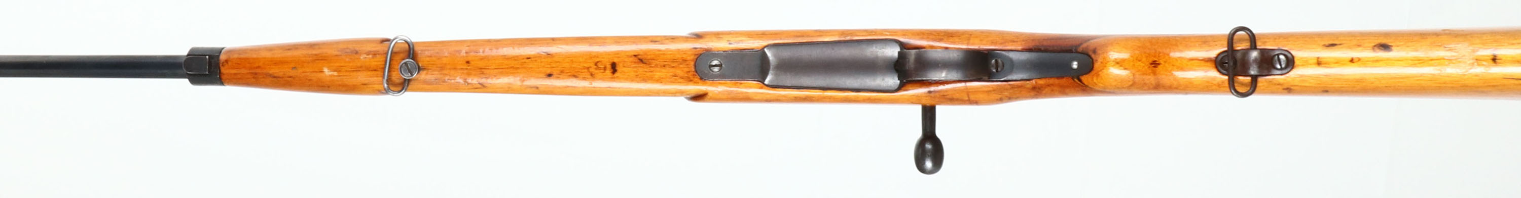 Kokura Arsenal, Model: Type 38, Cal: 6.5x50mmR, MFG: 1935-41, S/N: 21936, 12th serial block, Bolt action rifle, 31 1/2'' barrel. The military semi-pistol grip wood stock is good, stock has been cut down & re-shaped, stock appears to have been lightly sanded & re-finished, stock has light scratches, dings, dents & wear from use/age. The metal finish rates 80% overall with grind marks on the top of receiver & light wear. Left side of receiver is marked with S/N, & arsenal mark, top of receiver has a ground off but still slightly visible chrysanthemum, & ''Type 38'' in Japanese. Bore is very good, bright & clean with lightly thinned rifling. Barleycorn front sight with V-notch ladder rear sight marked 5 to 24. Metal buttplate with wear & patina. bottom sling mounts. The barrel is not cut down so this would make a good rifle to un-sporterized. FFL or C&R Req. - Value: 150 to 300