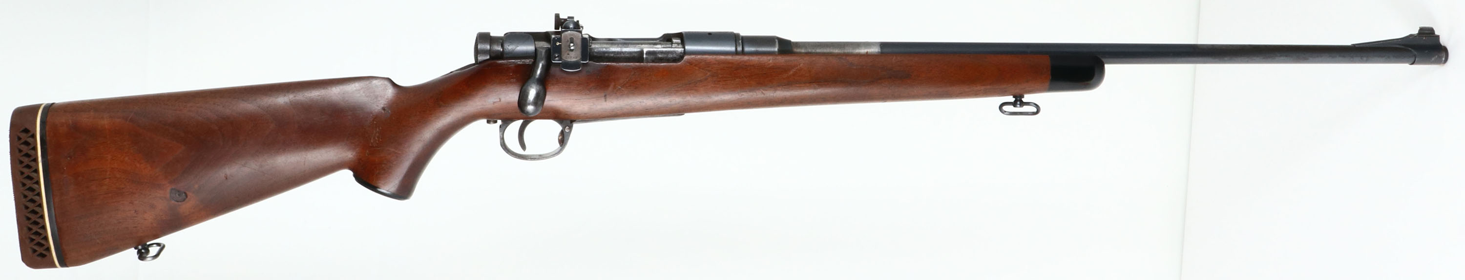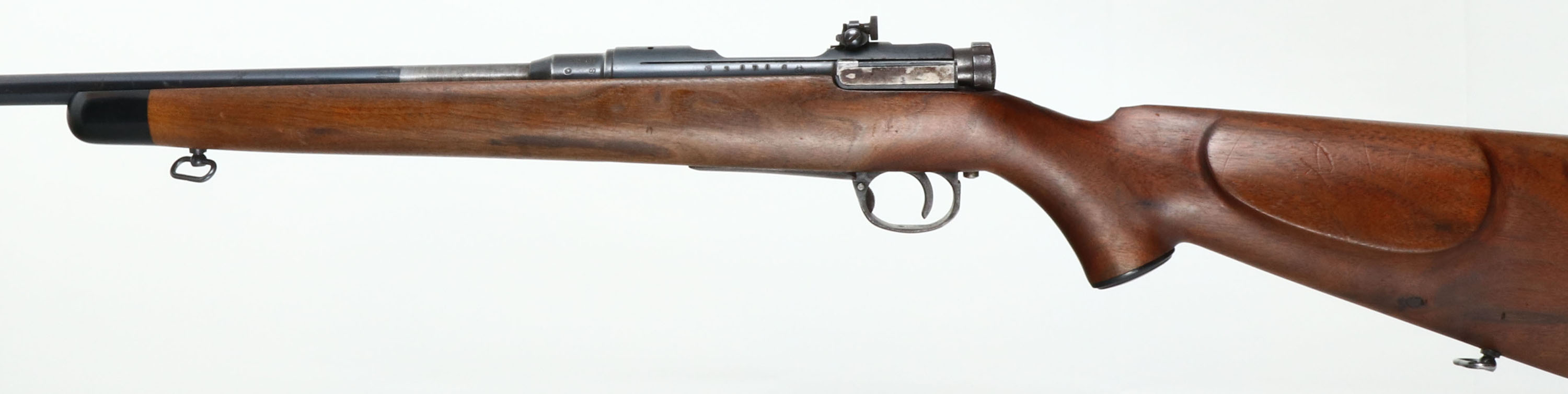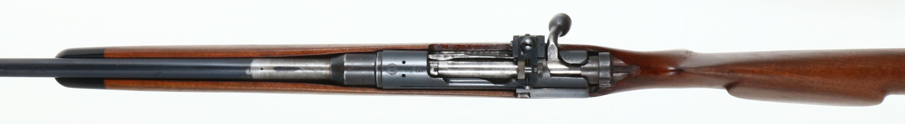 Kokura Arsenal, Model: Type 38, CAL: .308 WIN, MFG: 1935-41, SN: 31716, 25th serial block, Bolt Action Rifle, 24'' step-down barrel. Top of receiver carries the Chrysanthemum flower seal. Left side of barrel stamped ''WIN 308''. The cheeked & capped pistol grip wood stock, with black forend tip is very good, displaying contusions, scratches, scrapes & dings. There's a small glued edge chip repair behind the bolt & the right side of stock has a 1/2'' natural knot. The metal finish has toned to a mix of metal gray, brown patina & remaining blue. Bore is good, clean & bright, but with spots of roughness between strong rifling. The receiver holds a Lyman 575ME side mounted peep sight, while the barrel has a ramped blade front sight. Buttstock carries a ventilated recoil pad with a small missing chunk at the toe. Sling swivels. FFL or C&R Req. - Value: 250 to 500