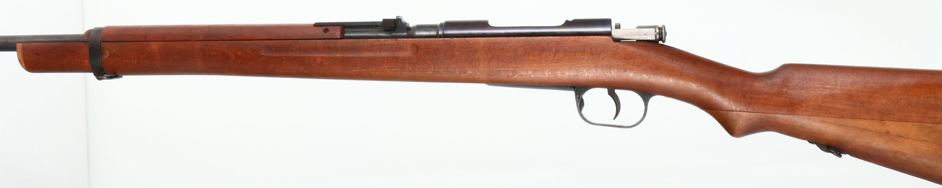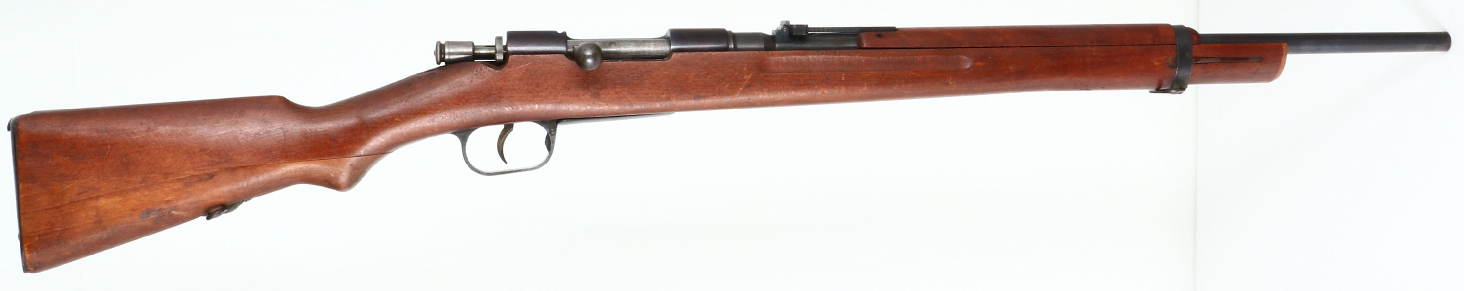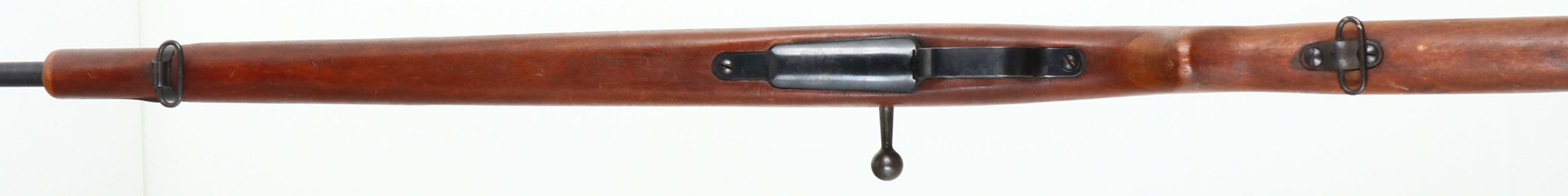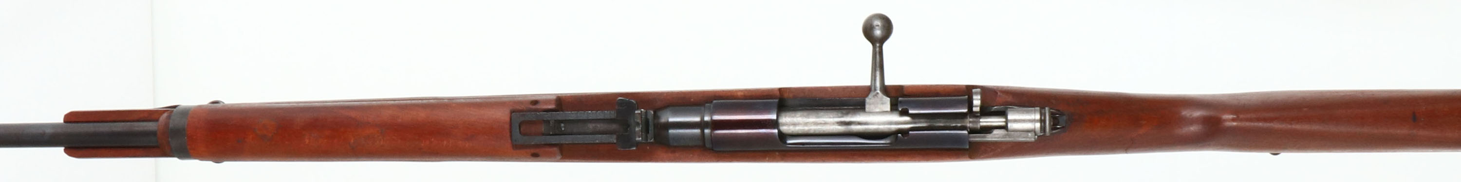Beretta, Type I Rifle, CAL: 6.5x257 Roberts, MFG: 1938-39, S/N: K9930, Bolt Action Rifle, 23'' barrel. The military semi-pistol grip wood stock is good, stock has been cut down but the upper handguard is intact, sock has light scratches, nicks, dings, dents & wear from use/age. The metal finish on the barrel rates 80% with light wear, the receiver has been re-blued and rates 99%. The left side of barrel is marked with S/N, & caliber, bolt is marked ''PB'' for Beretta. Bore is good to fair, bright with thinned rifling & light pitting. No front sight, V-notch ladder rear sight marked 5 to 24. Buttstock carries a military style buttplate, with rust. These rifles were made by the Italians under contact for the Japanese Navy. FFL or C&R Req - Value: 100 to 200