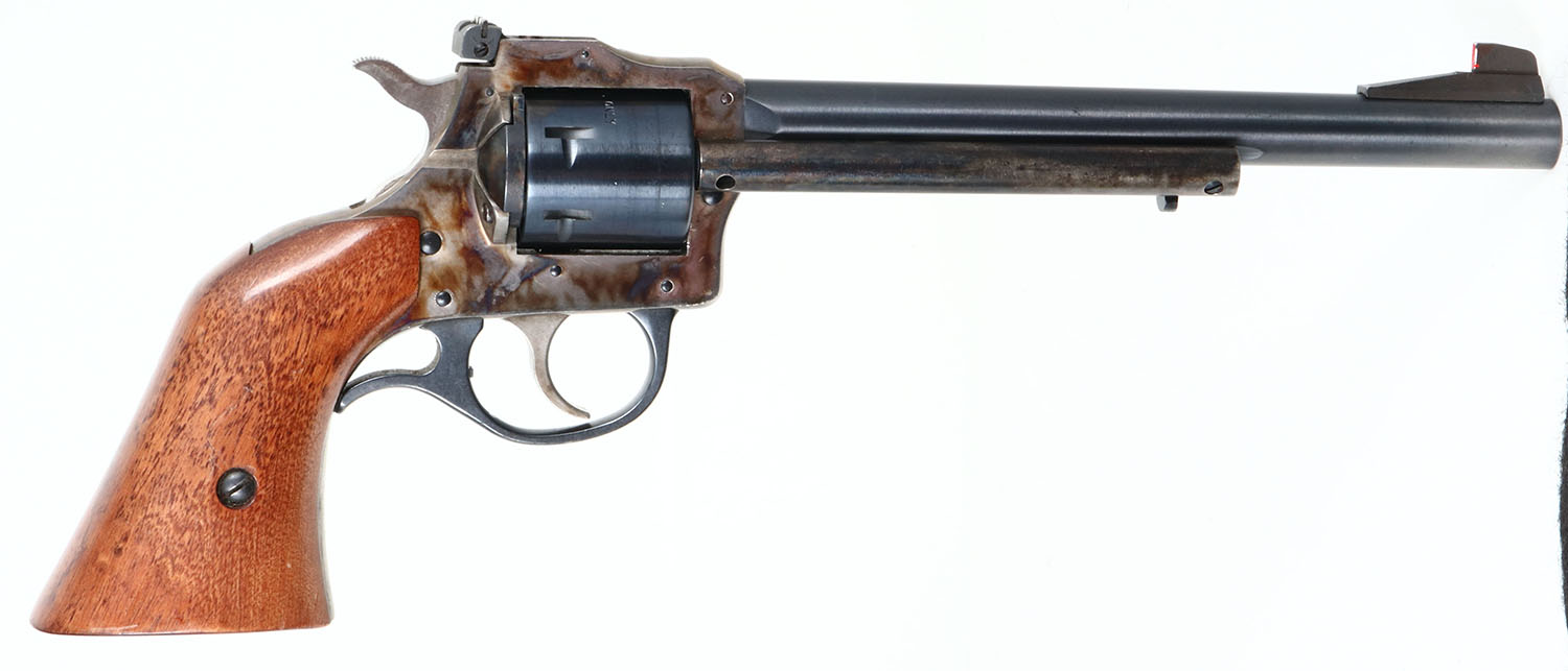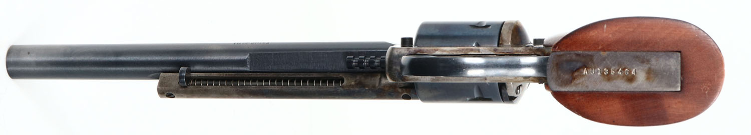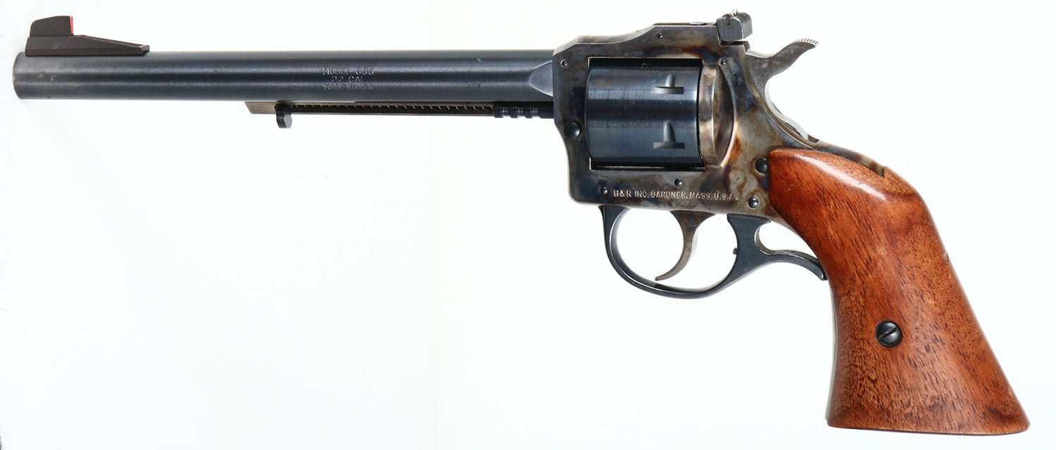 Harrington & Richardson, Model 686, CAL: 22 WMRF, MFG: 1980's, SN: AU135464, Double Action Revolver, 7 1/2'' barrel. The original wood grips are excellent, with a few contusions & scrapes. The metal blue finish on the barrel, cylinder & trigger guard rates 99%. The frame & backstrap are case-hardened, retaining faded, but visible case-colors. Bore is excellent. The frame holds an adjustable rear sight & elevated blade front sight. Cylinder has a slight amount of play. FFL Req. - Value: 150 to 350
