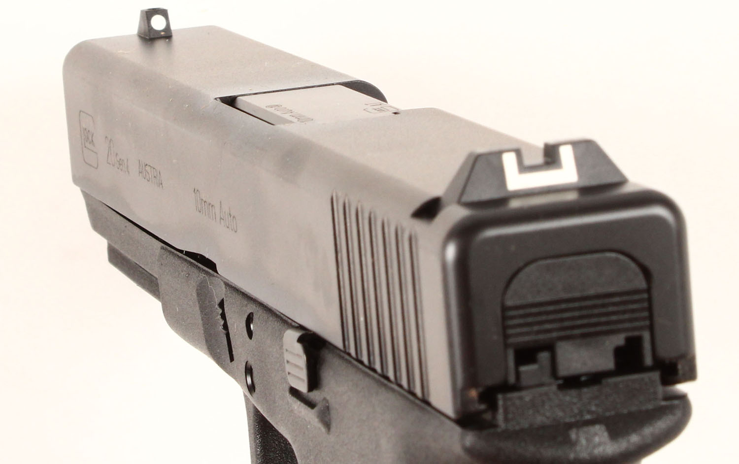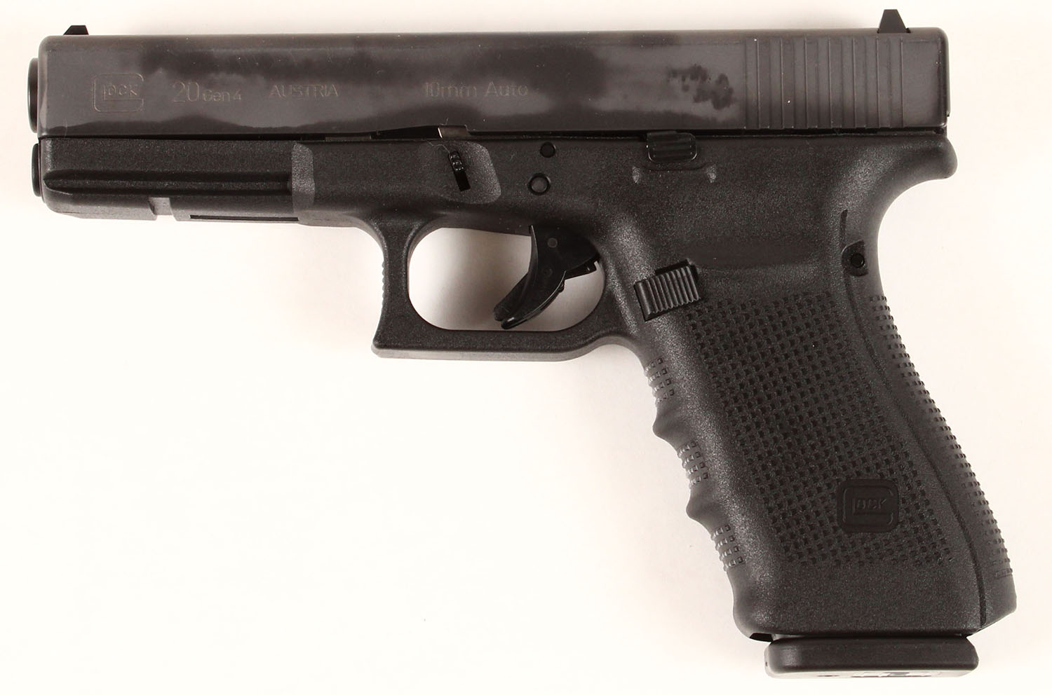 NEW CASED, Glock, Model 20 Gen 4, CAL: 10mm, MFG: Modern, Semi Auto Pistol, 4 1/2'' barrel. The textured polymer grip & frame are mint. The factory matte black finish is mint. Bore is mint. Factory square notch rear sight & white dot front sight. Comes in factory hard case, with owners manual, lock/key, grip attatchments, (3) 15rd mags & speed loader. NOS. FFL Req - Value: 500 to 700