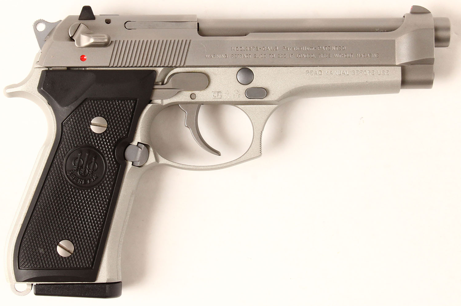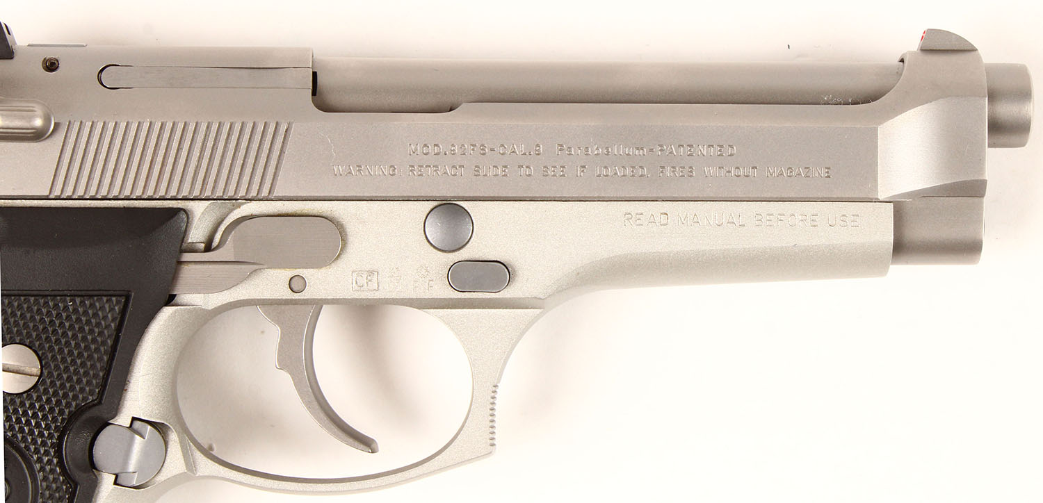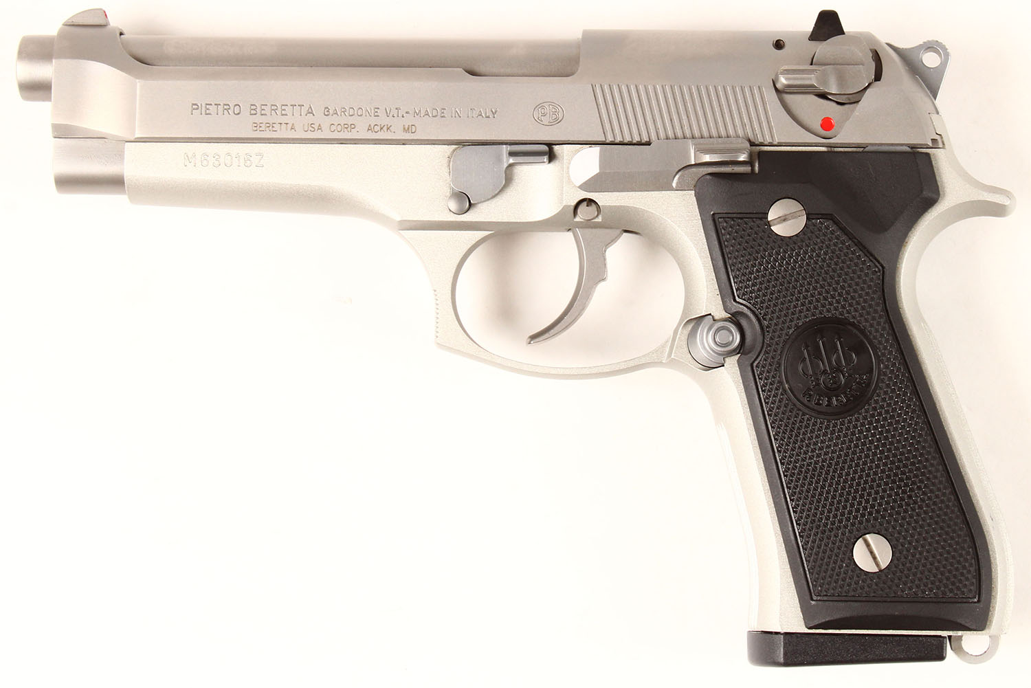 BOXED/CASED, Beretta, Model 92-FS, CAL: 9mm, MFG: 1976-Present, SN: M63016Z, Semi Auto Pistol, 5'' barrel. The Beretta marked checkered black plastic grips are excellent. The stainless steel finish on the frame & slide is excellent. Bore is excellent & minty. The slide holds a red two-dot rear sight & single red dot front sight. Comes in original case, with cardboard sleeve, paperwork, extra mag, lock/key & cleaning kit. A seemingly NIB pistol that has little to no use. FFL Req. - Value: 500 to 900