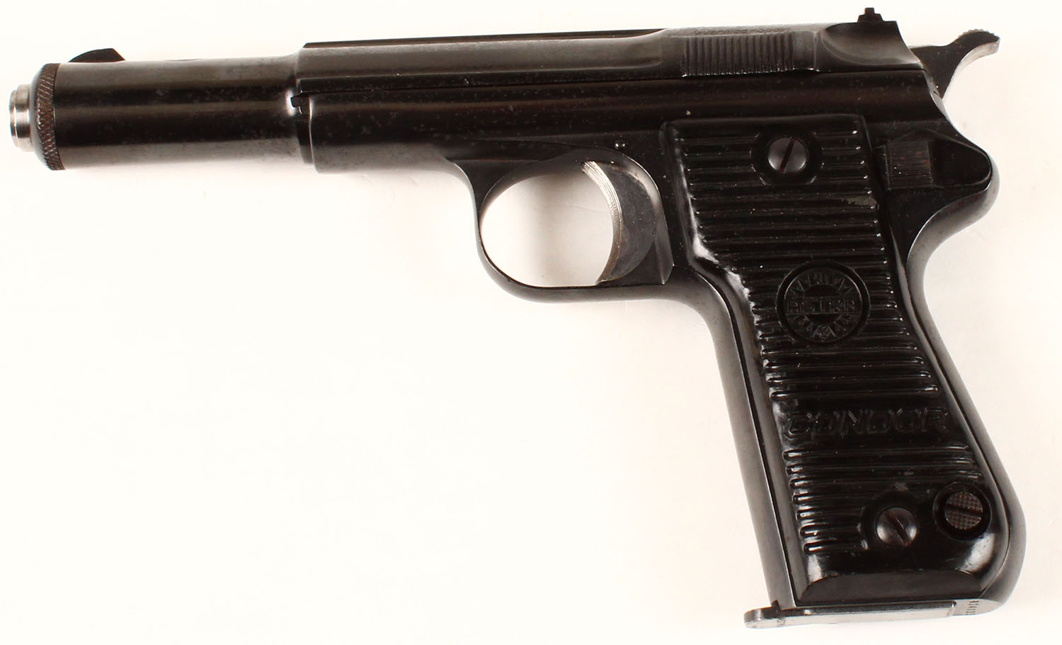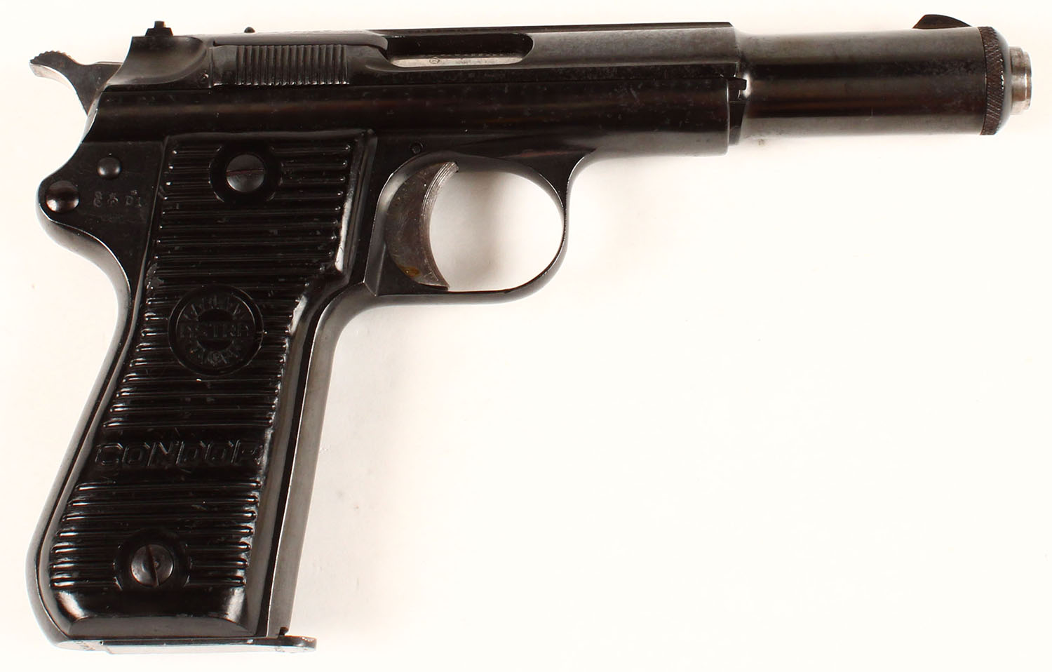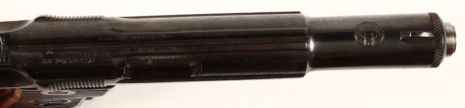 Astra, Model 800 ''Condor'', CAL: 9mm Para, MFG: 1958-68, SN: 824033, Semi Auto Pistol, 5 1/4'' barrel. The original Astra Condor grips are very good & solid, with scuffs, scrapes & dings. The metal blue finish rates 85% overall, with consistent spotting throughout. Bore is excellent. The slide carries notch & blade sights. Total production of about 11,400. This model is similar to the Model 600, but with an external hammer & loaded chamber indicator. FFL or C&R Req. - Value: 1000 to 2000