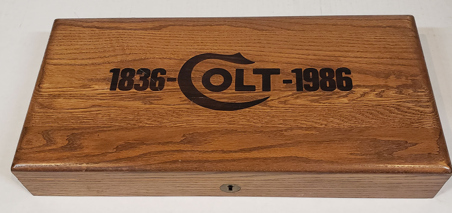 | Colt 150 Year commemorative wood display case. MFG: 1986. The ca...