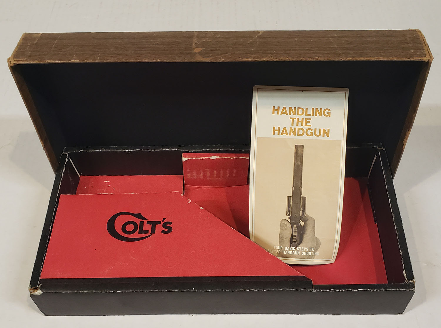 | BOX ONLY: Colt Python revolver wood grain box with red interior ...