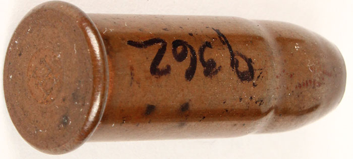 44 Henry. HS=Raised ''H''. Extended Length BLANK. This appears to be a short Length Henry with an extended length of 1.35''. Wad is .41'' down from the case mouth. Grade: Very Good ++ - Value: 20 to 60